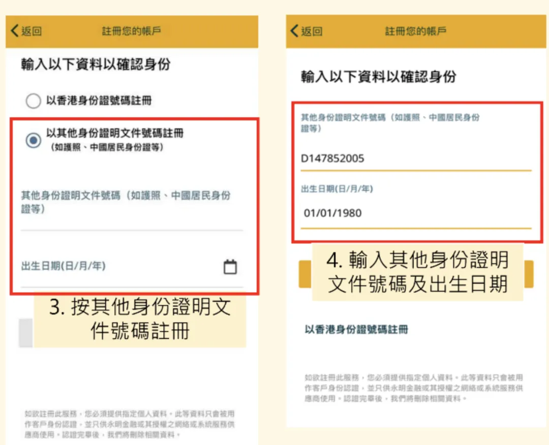 ⚡第2步:选择「注册证件类型」,填好个人资料,选择「下一步」。