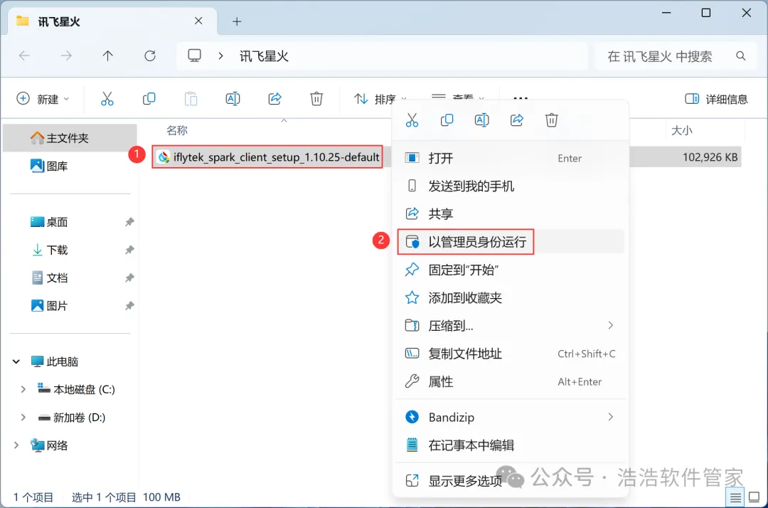3、找到【讯飞星火】应用程序,右键选择【以管理员身份运行】它