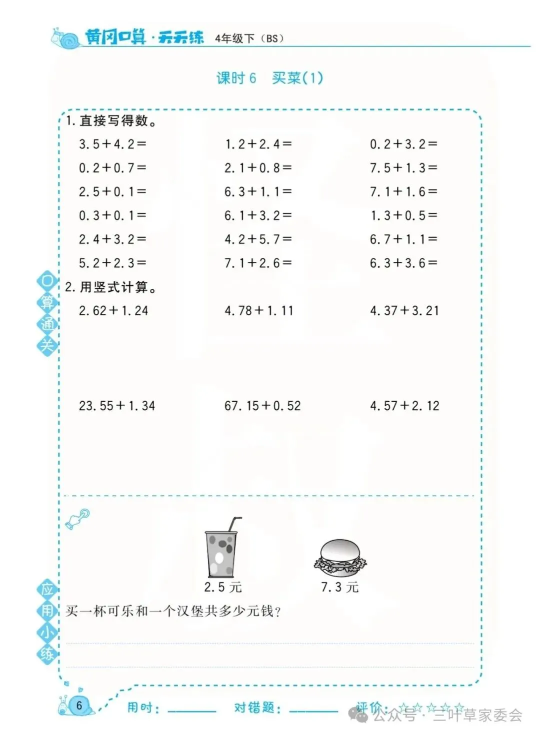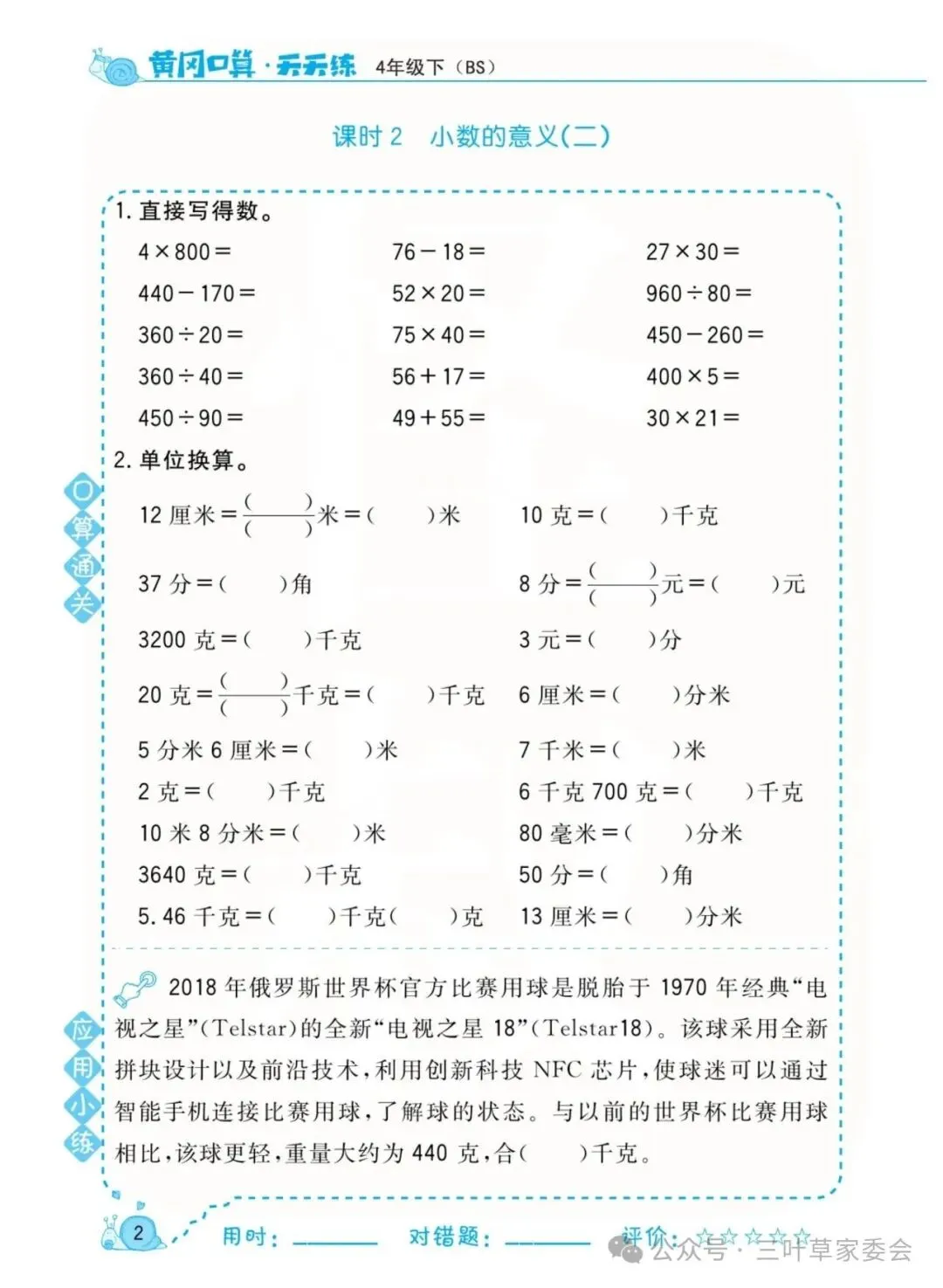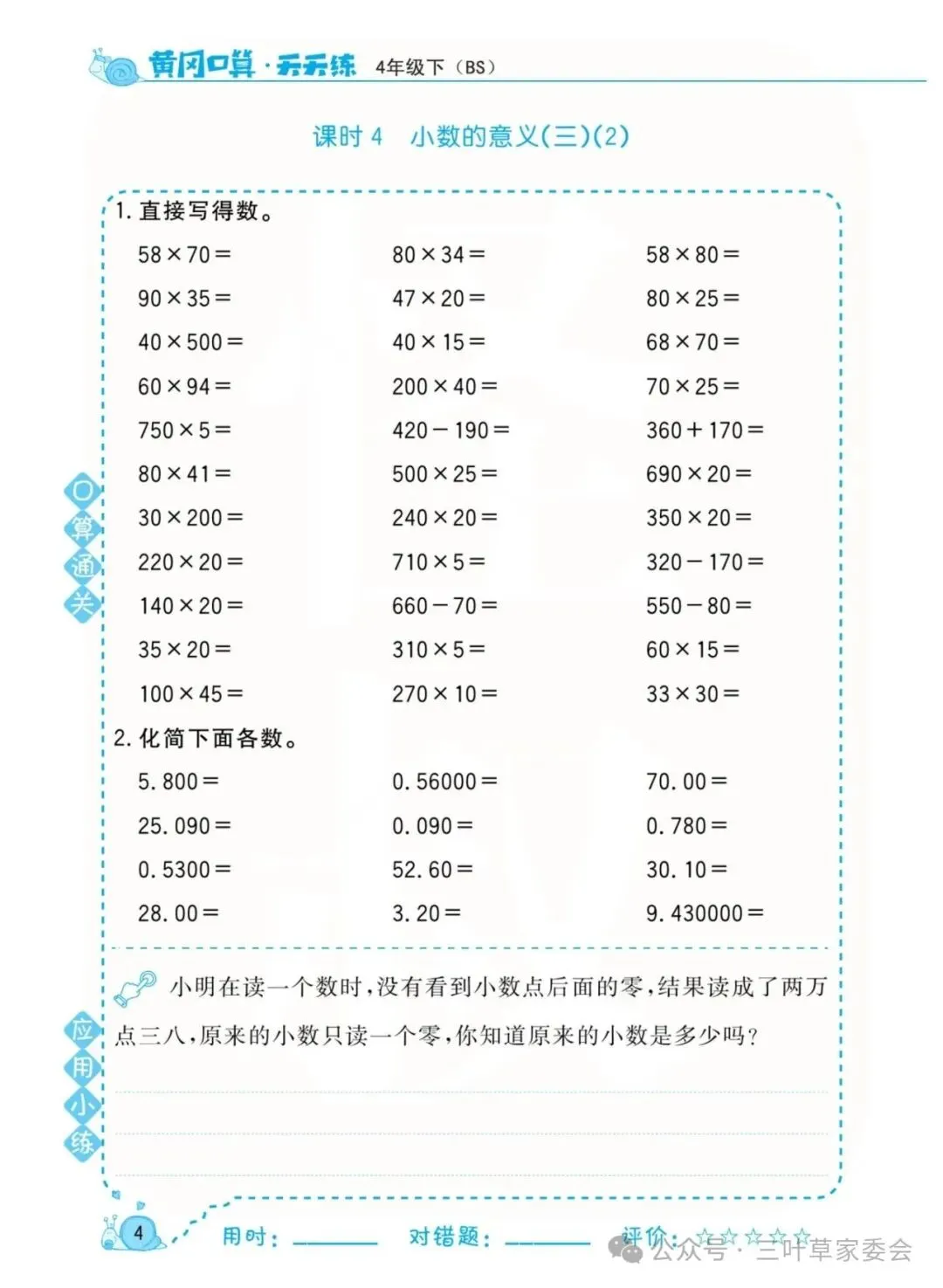 《数学北师大版 4年级下册 口算天天练》可免费下载打印