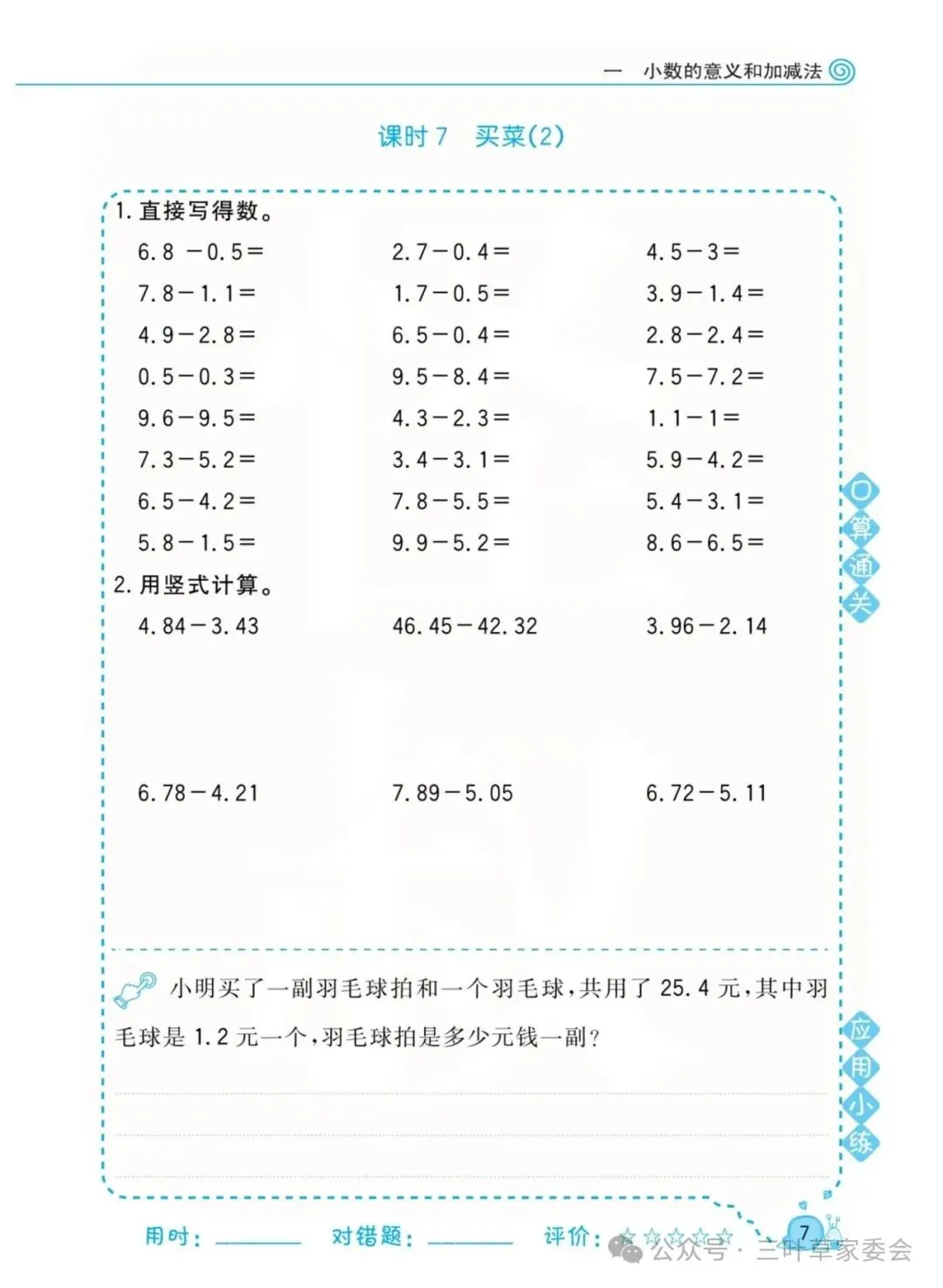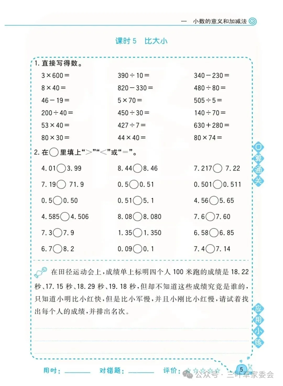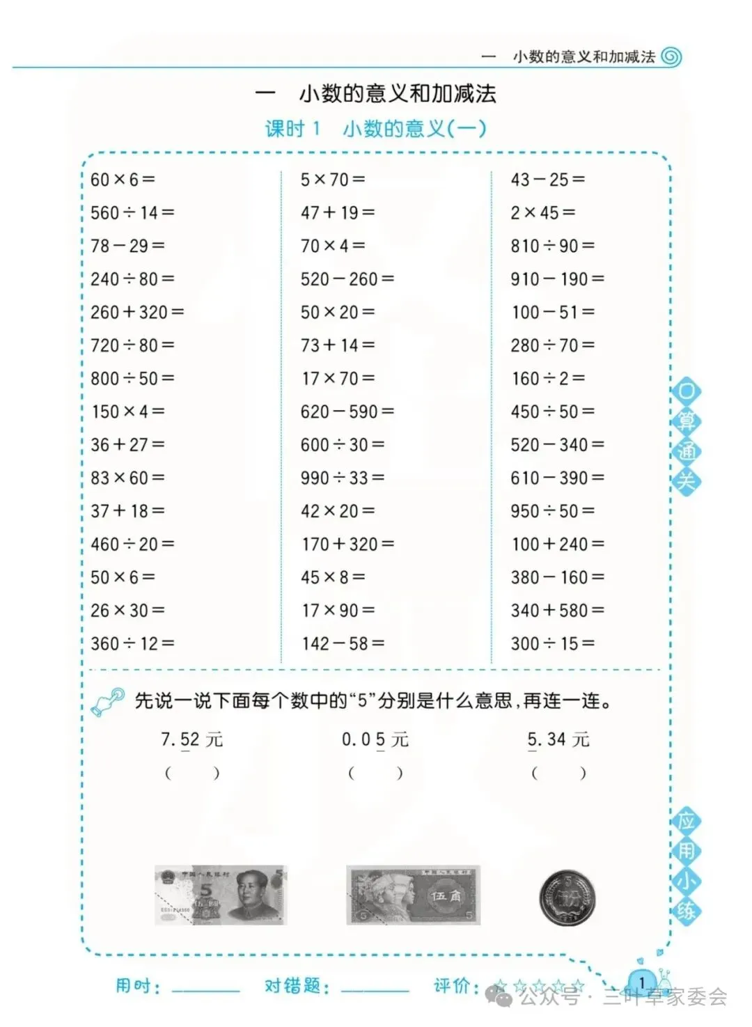 《数学北师大版 4年级下册 口算天天练》可免费下载打印
