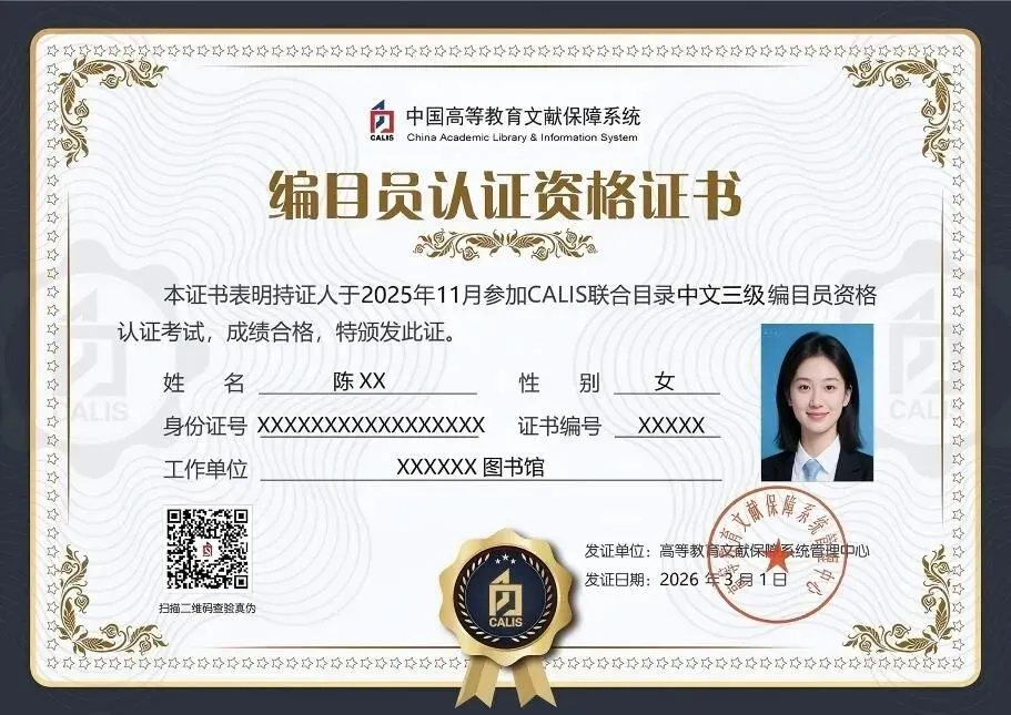 CALIS编目员认证资格证书迎来电子版