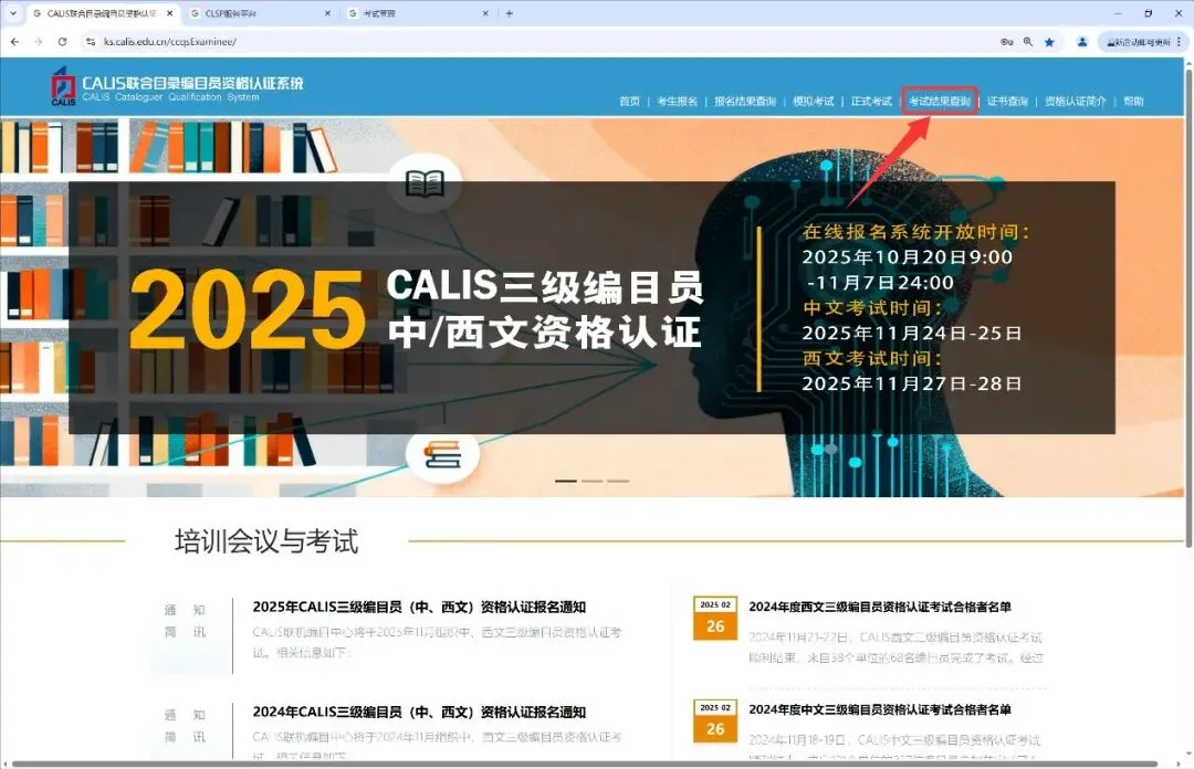 (https://ks.calis.edu.cn/ccqsExaminee/),在“考试结果查询”中下载电子版证书。