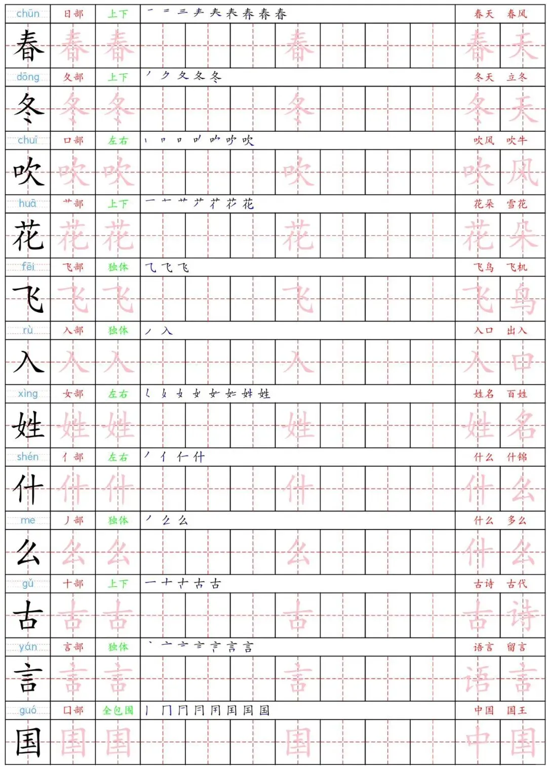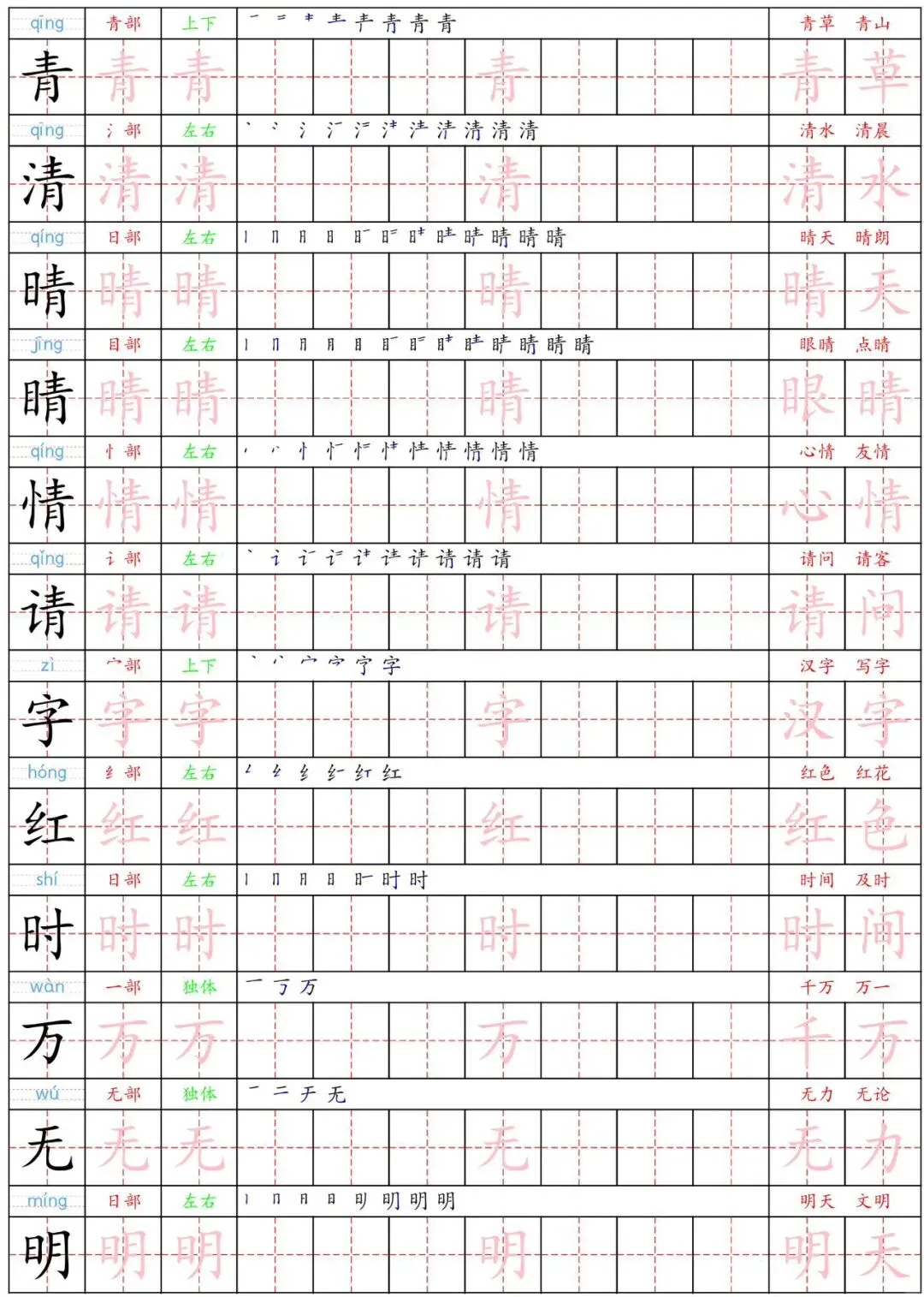 26年新版一年级下册语文《生字练字贴》(可下载 可打印)