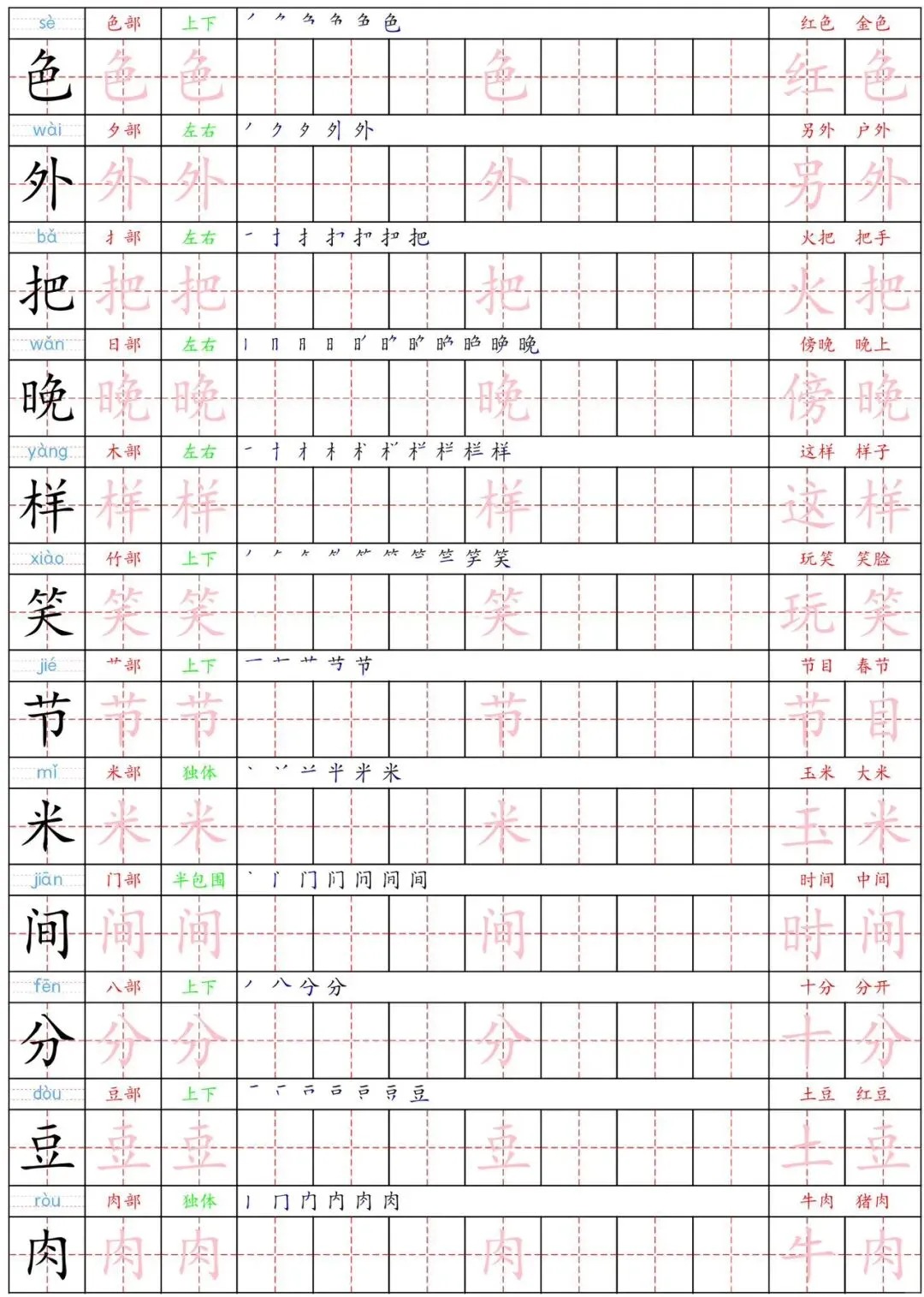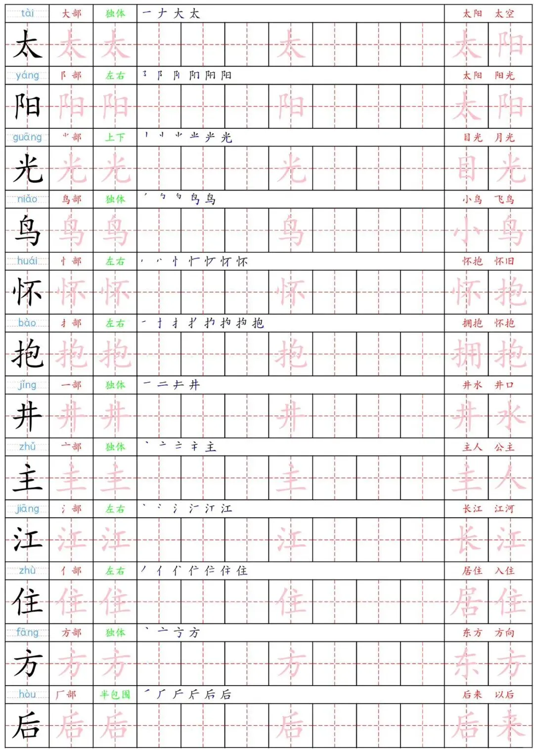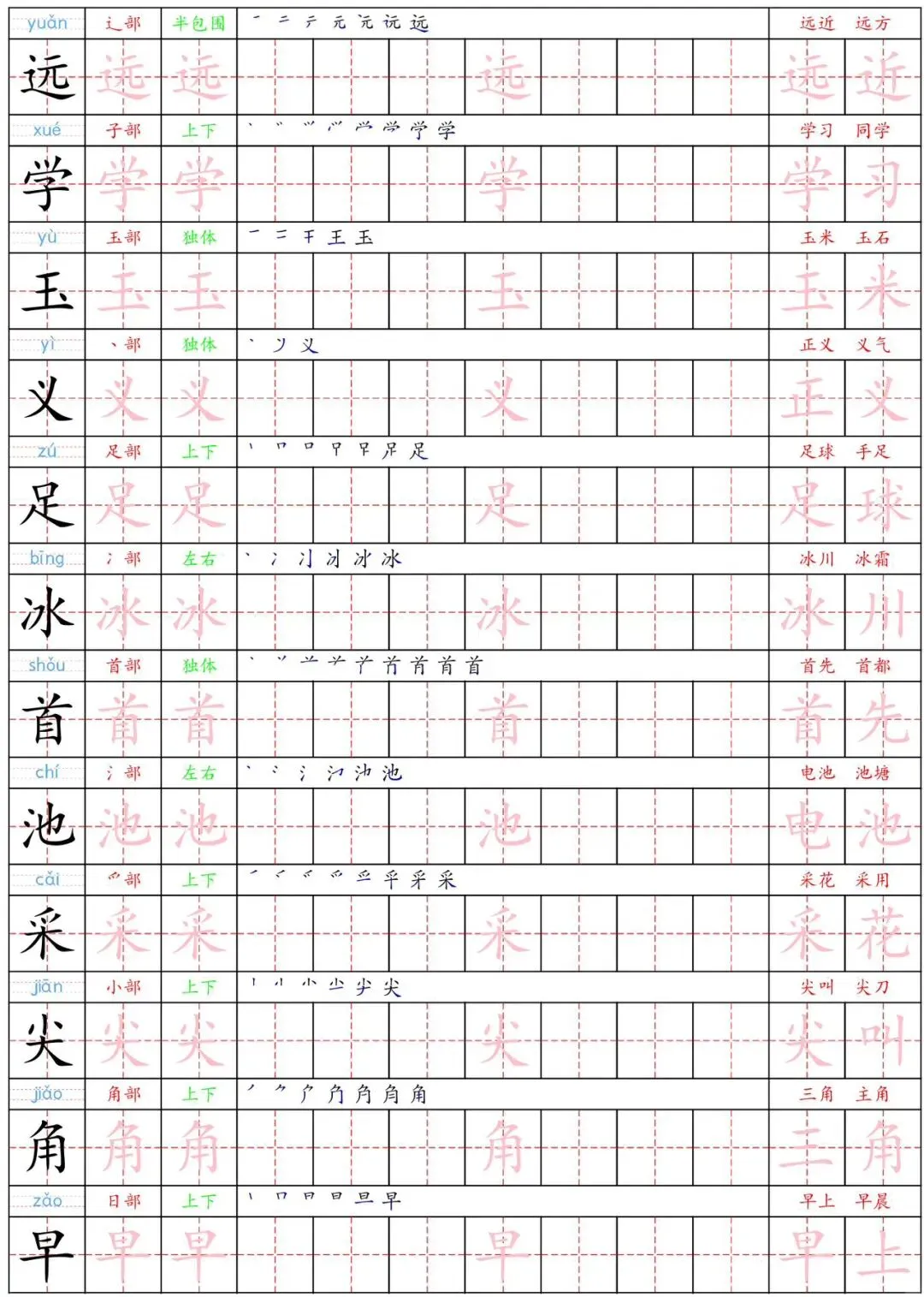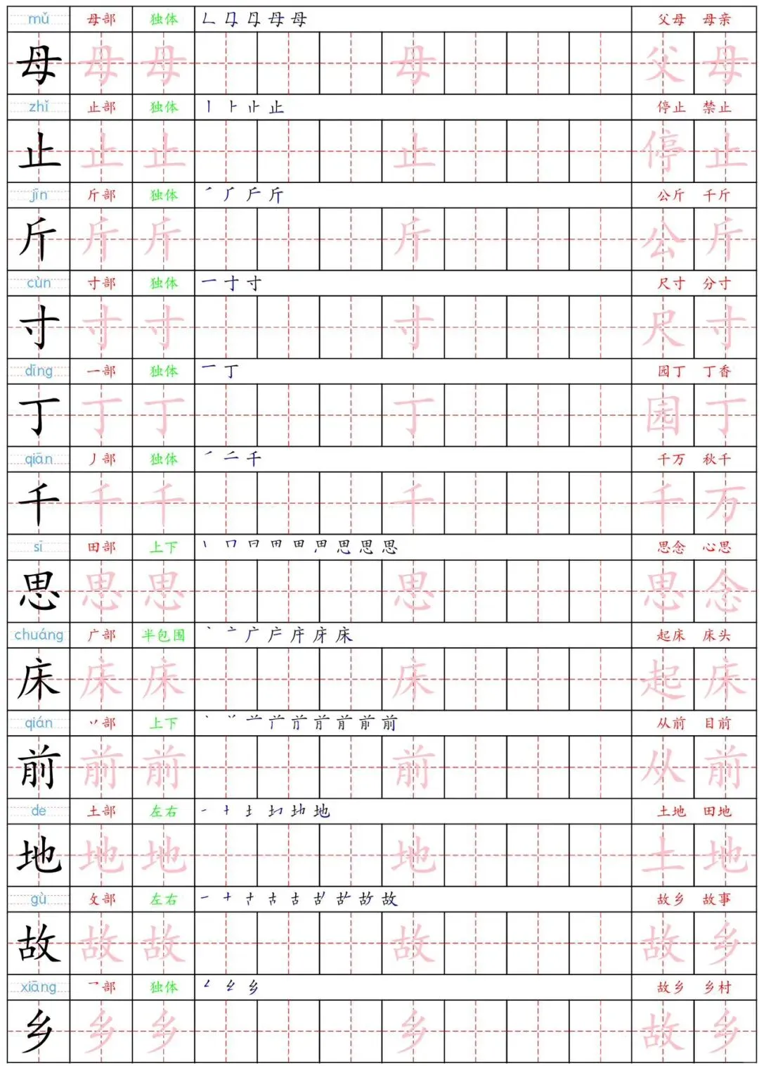 这份《一下语文生字练字贴》16页,含写字表中生字的描红练习,帮助孩子巩固所学生字,提升数学规范,为新学期的语文学习奠定基础。需要的家长赶紧打印出来,给孩子练一练吧!