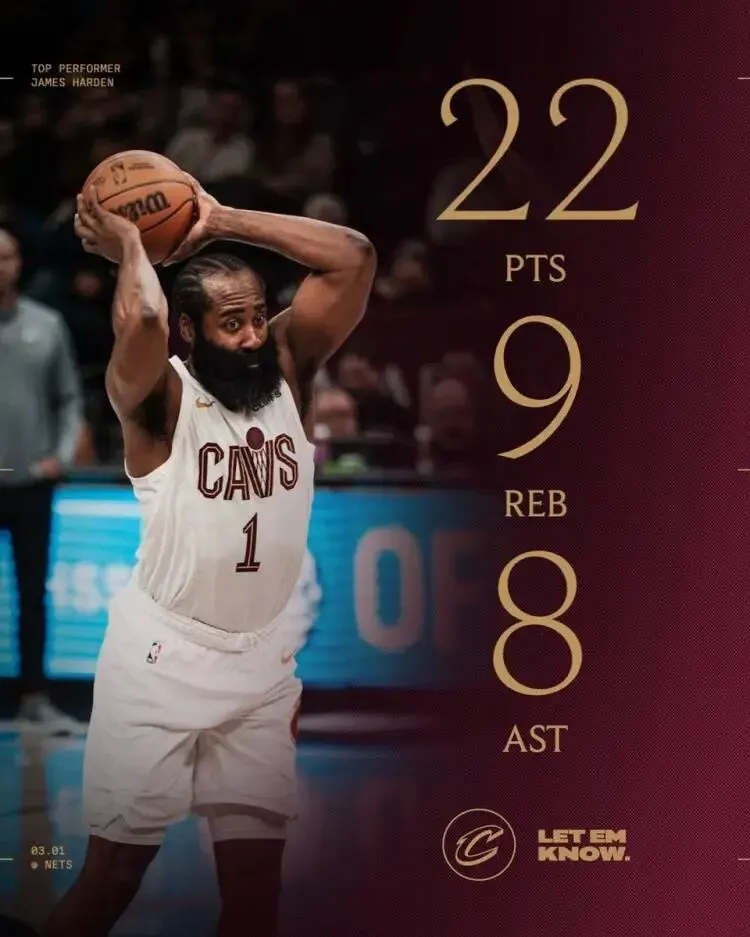 骑士官方晒出了本场哈登数据海报,写道:“大胡子复出并奉献了一场经典的表演。