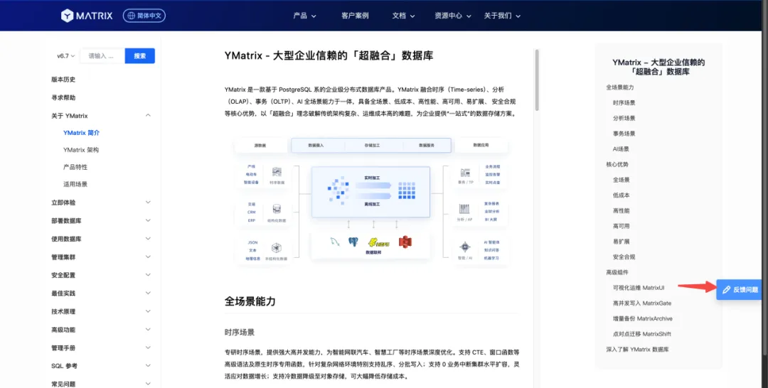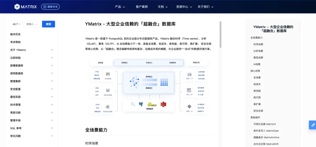 YMatrix 6.7 版本目录的上线,是文档体系优化的重要一步。我们将继续以“用户导向、精准适配、持续迭代”为核心,不断优化文档内容和结构,为用户提供更好的使用体验 。