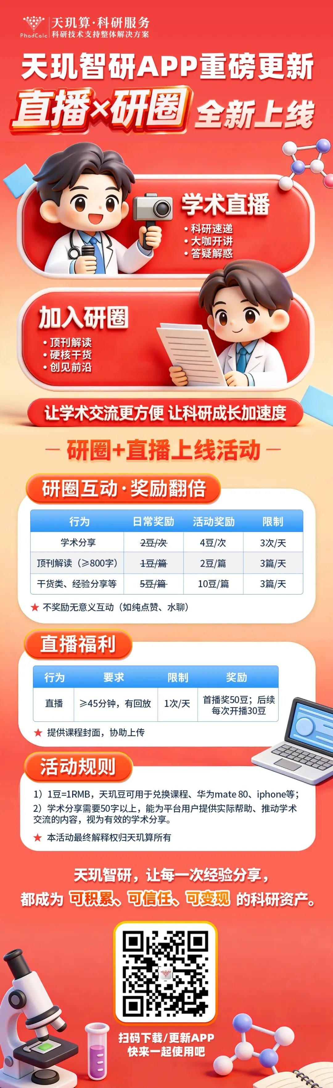 本次更新重点推出研圈、学术直播两大核心功能,精准匹配科研群体需求,旨在为科研群体搭建一个纯粹、高效的学术交流与知识传播平台。