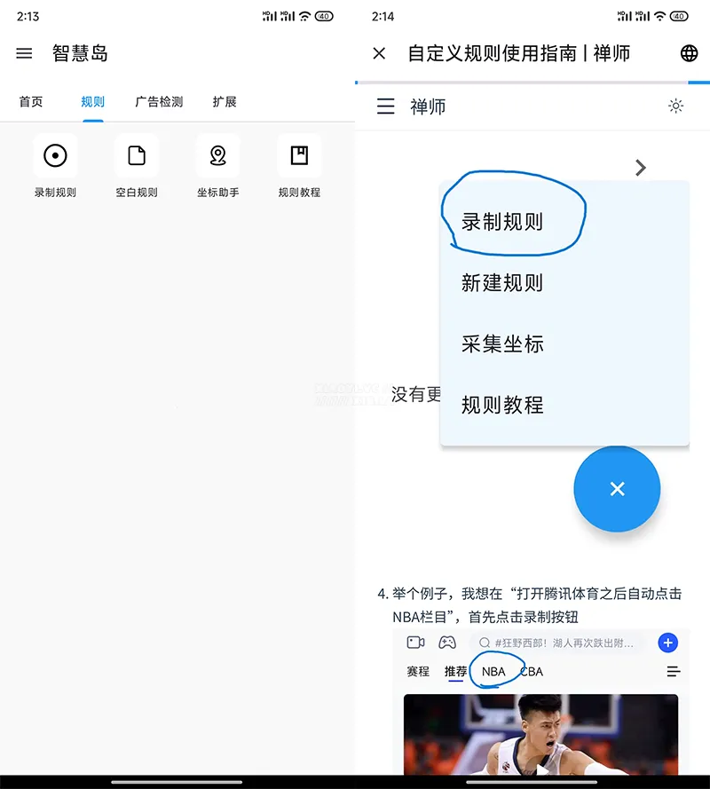 自定义规则方面也很简单,可以用录制规则,然后采集 “跳过” 按钮的位置,保存规则就行了。不会弄的也可以看官方给的教程。