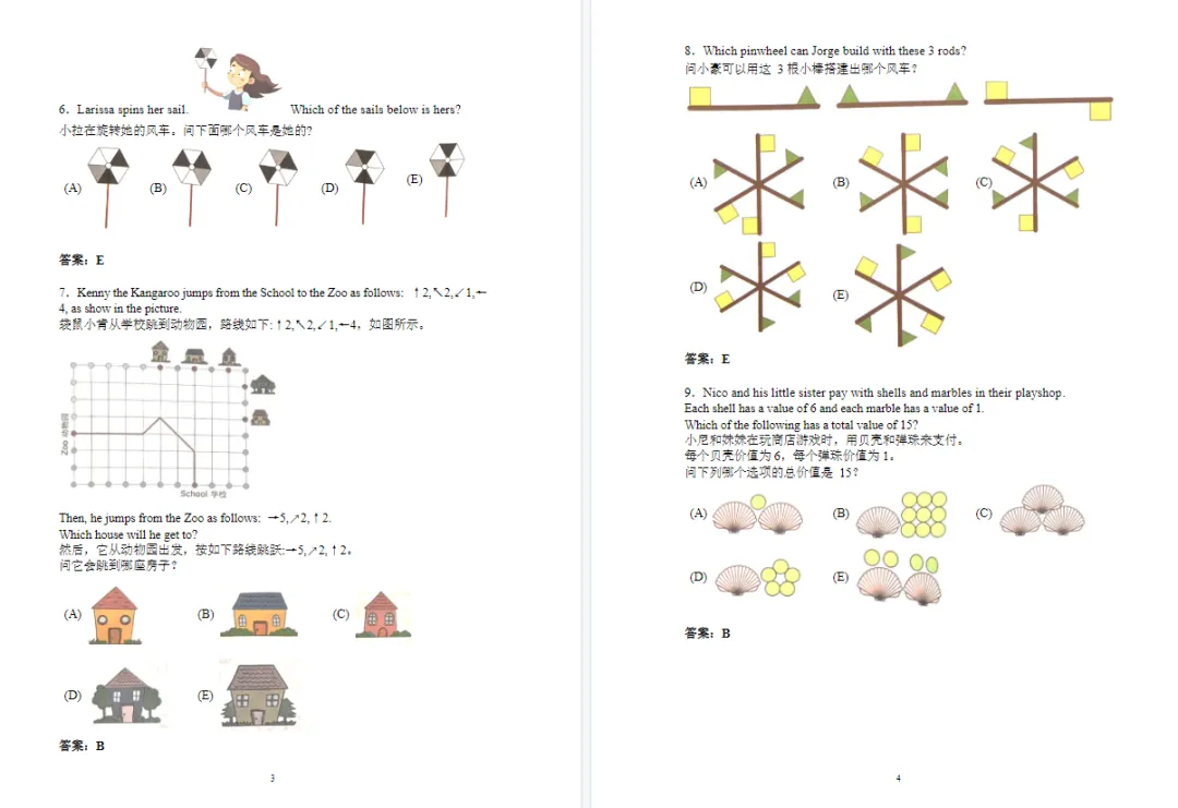 篇幅有限,仅仅展示部分袋鼠数学竞赛L1-L6真题