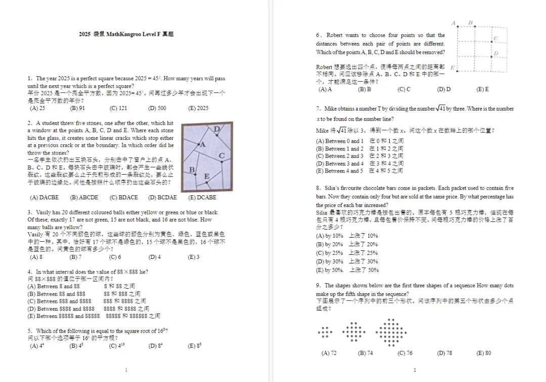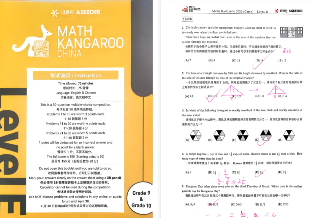 袋鼠数学竞赛真题领取!涵盖1-12年级可打印!