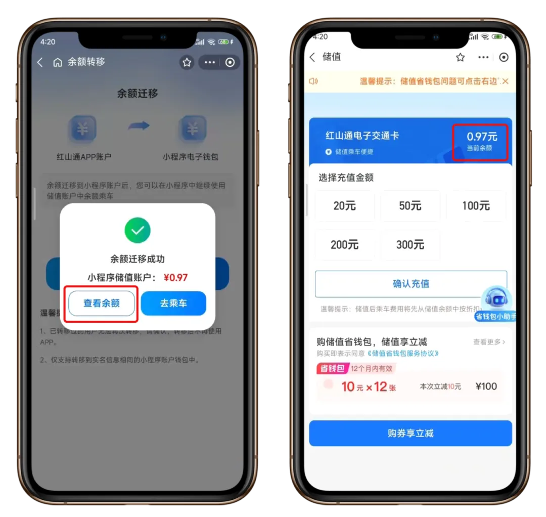 3月1日后,您依然可以登录红山通APP,点击页面上的“迁移公告”,继续完成向小程序的迁移操作。迁移成功后,即可在小程序内使用余额乘车。