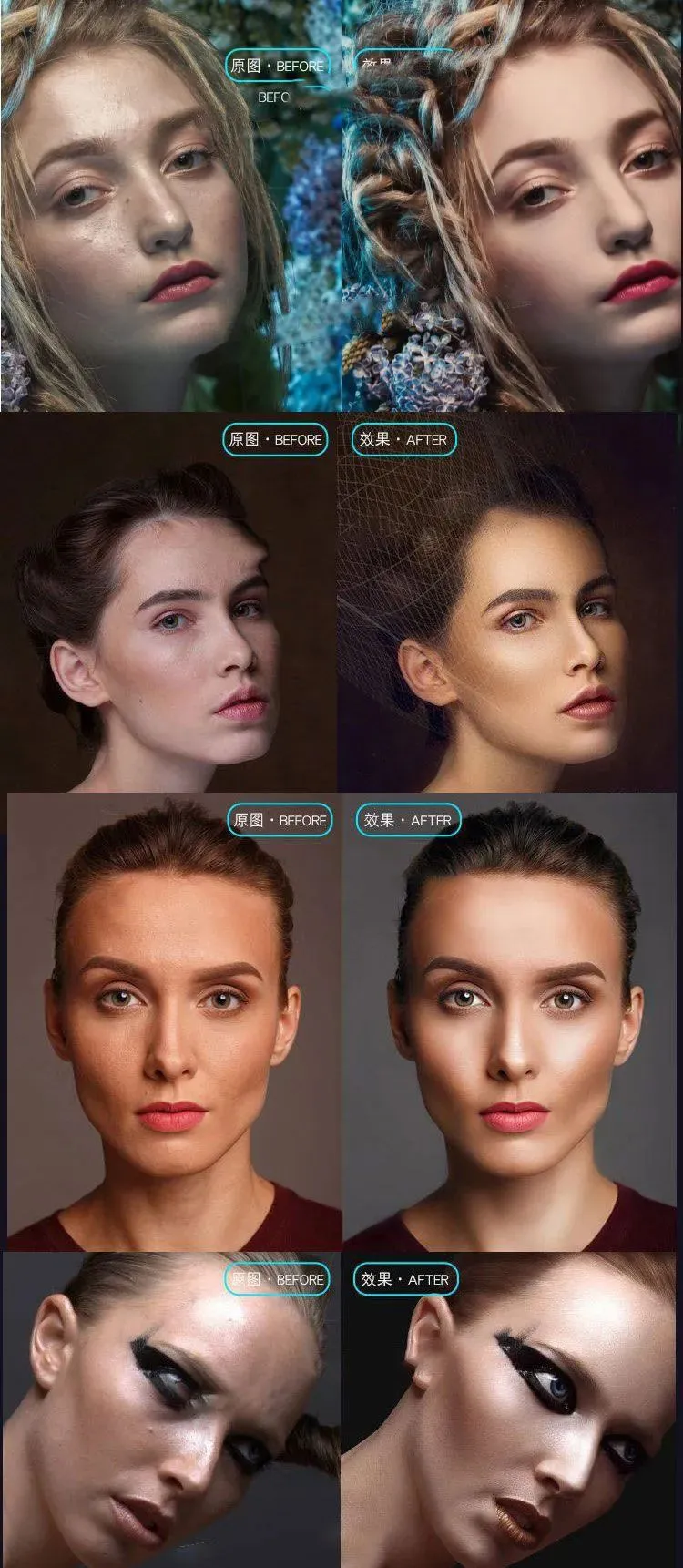 DR.0扩展面板专注人像修饰,其中包含多种适用于人像修饰的功能,可以快速进行人像美容修饰,适用于影楼快速美容磨皮以及摄影师人像后期处理等方面。