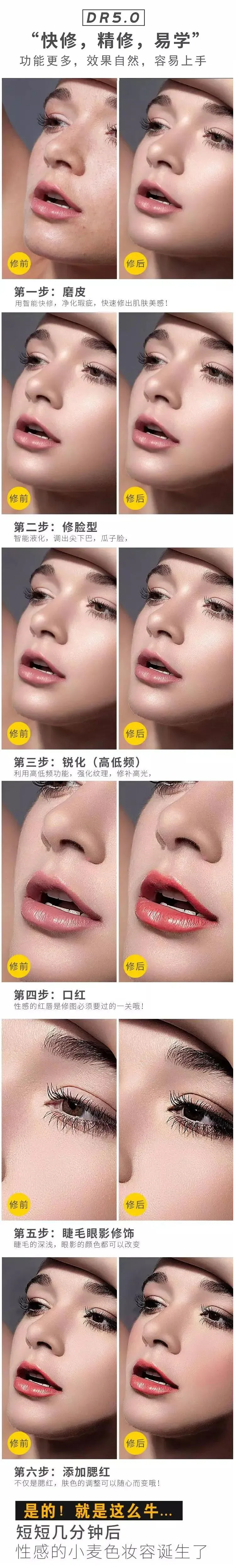DR5 的主要功能就是针对人像美容修饰,可以快速的进行磨皮、皮肤美化的操作,只需几步操作就胜过那些使用过多年PS的老司机