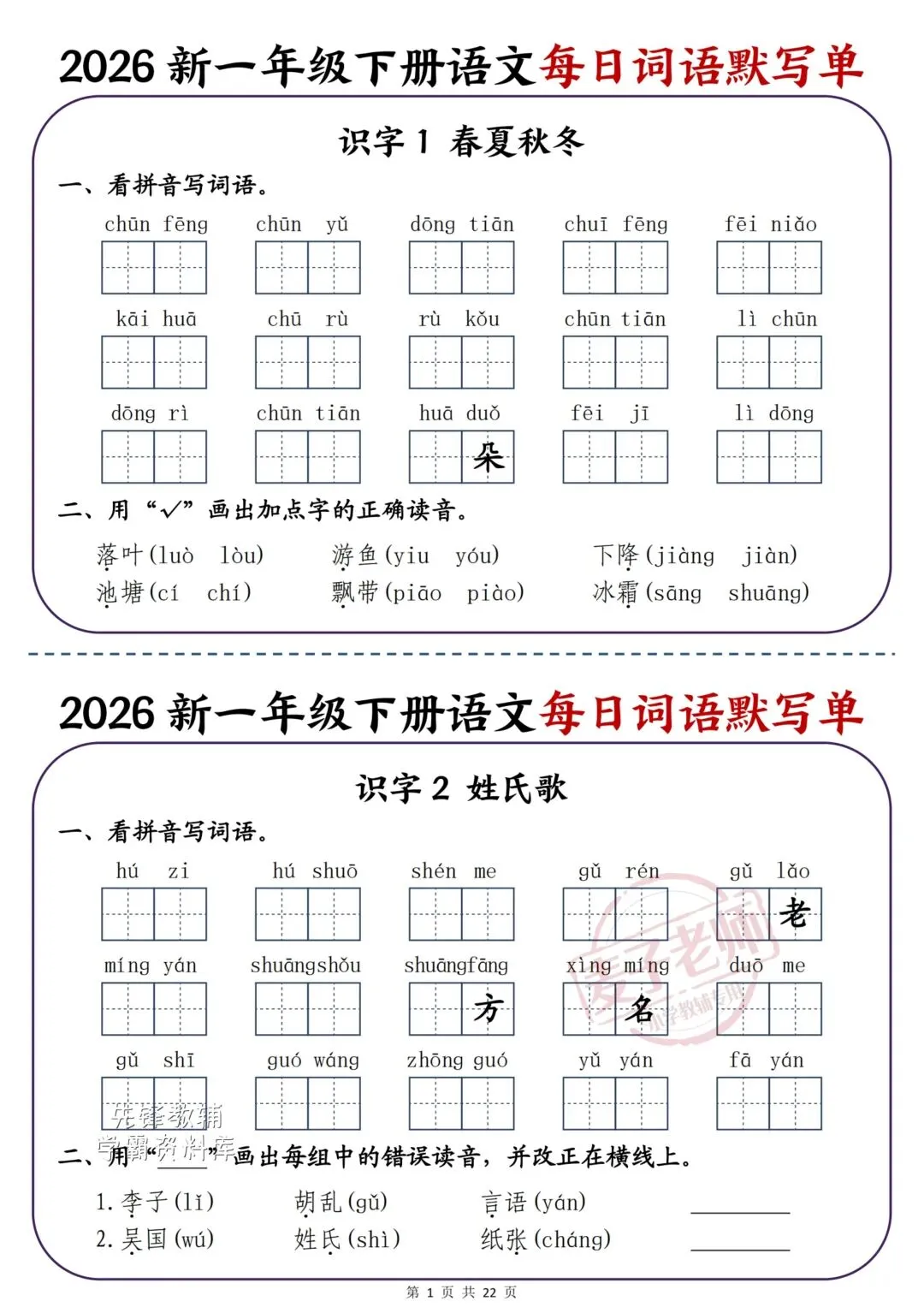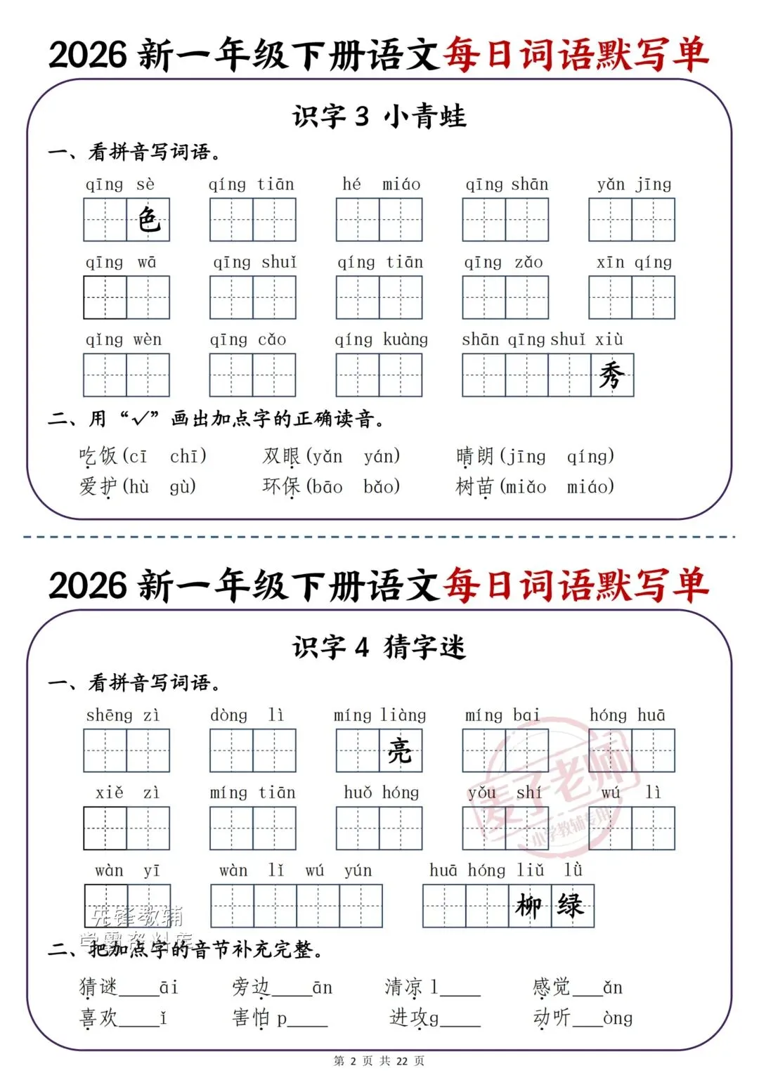 2026春一年级语文下册彩色一课一贴,吃透这些孩子基础稳拿高分!