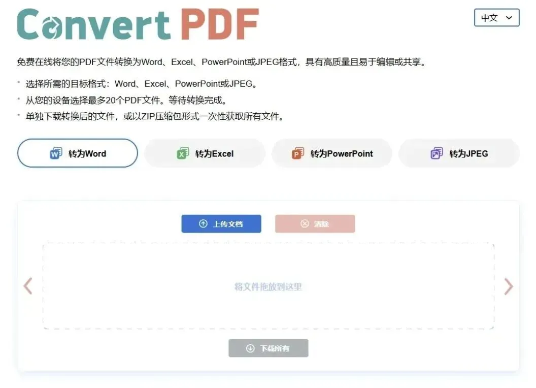 ConvertPDF是一个免费的在线PDF转换工具;软件支持网页端。