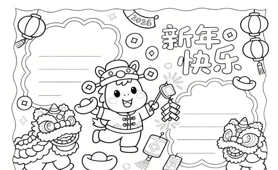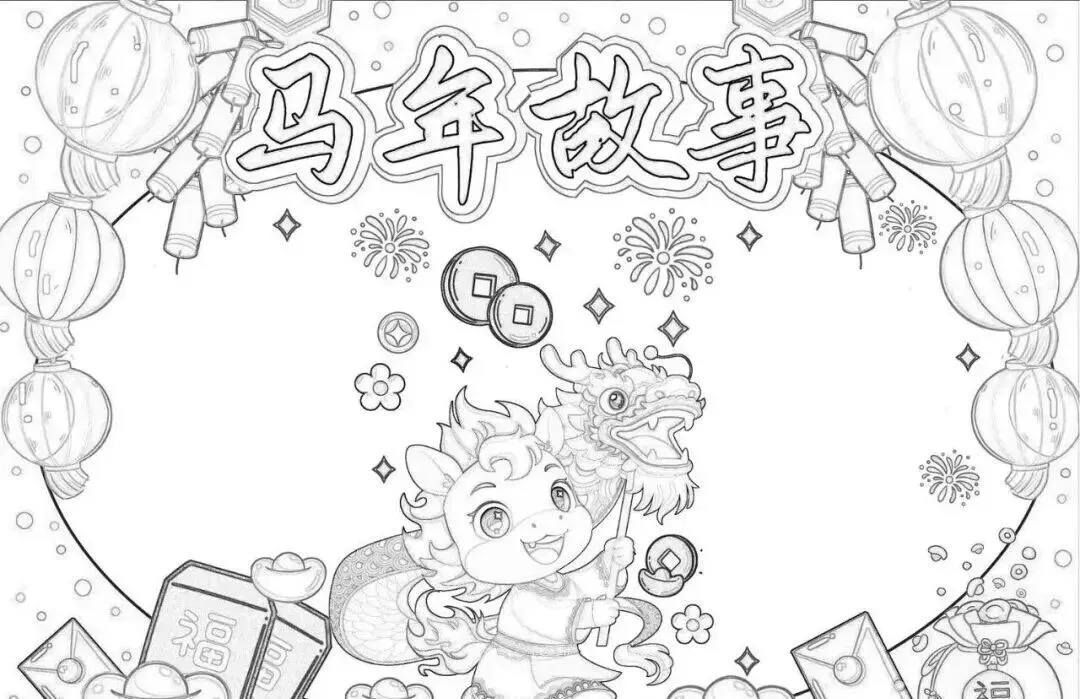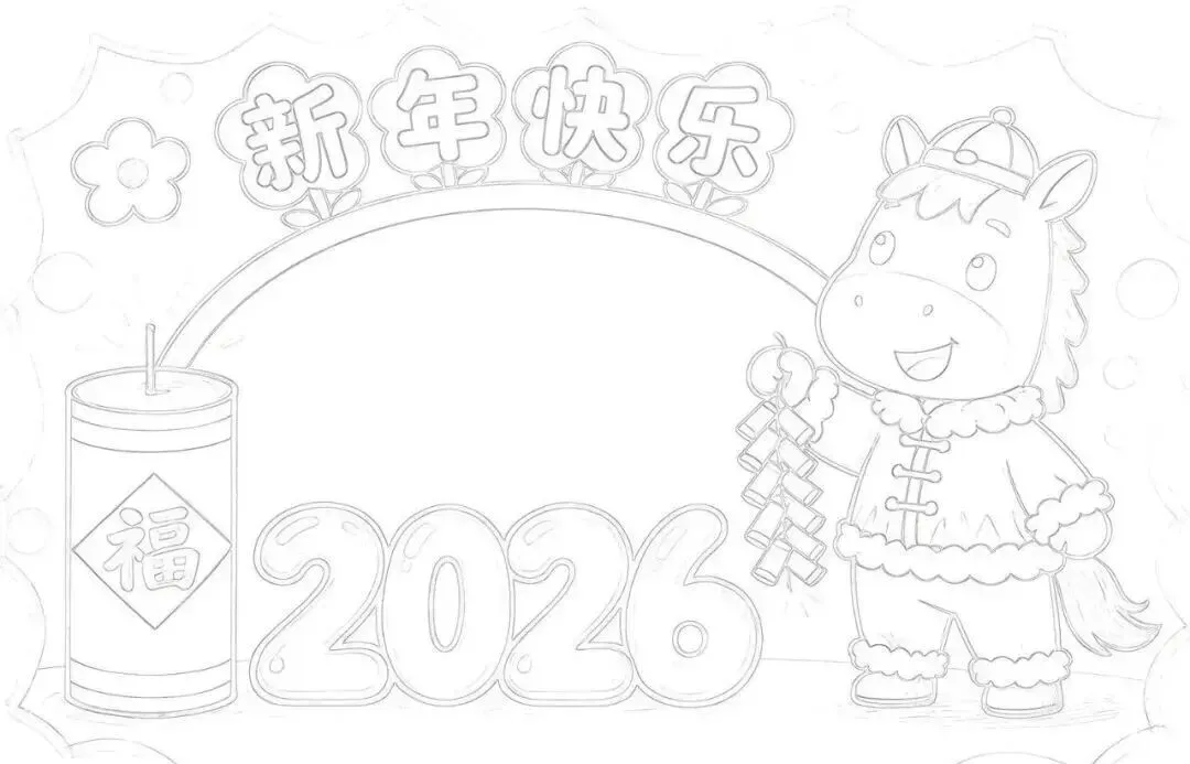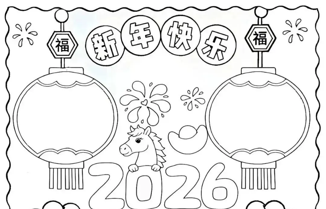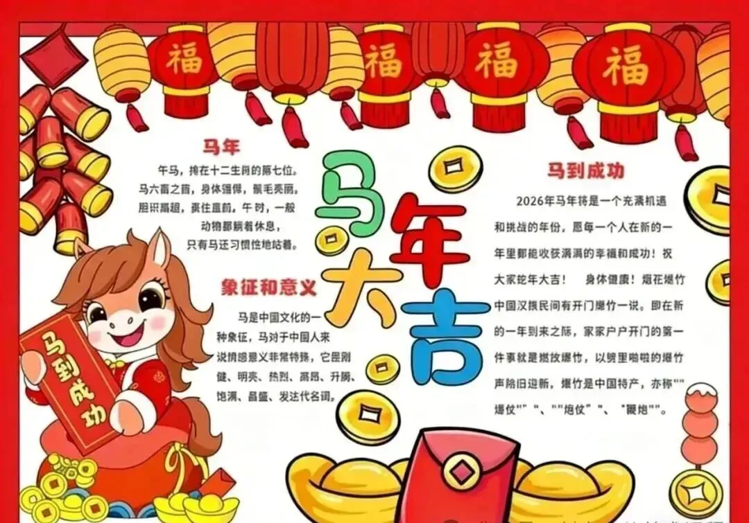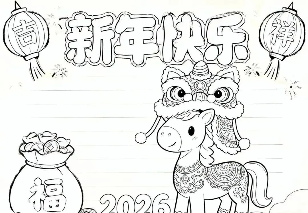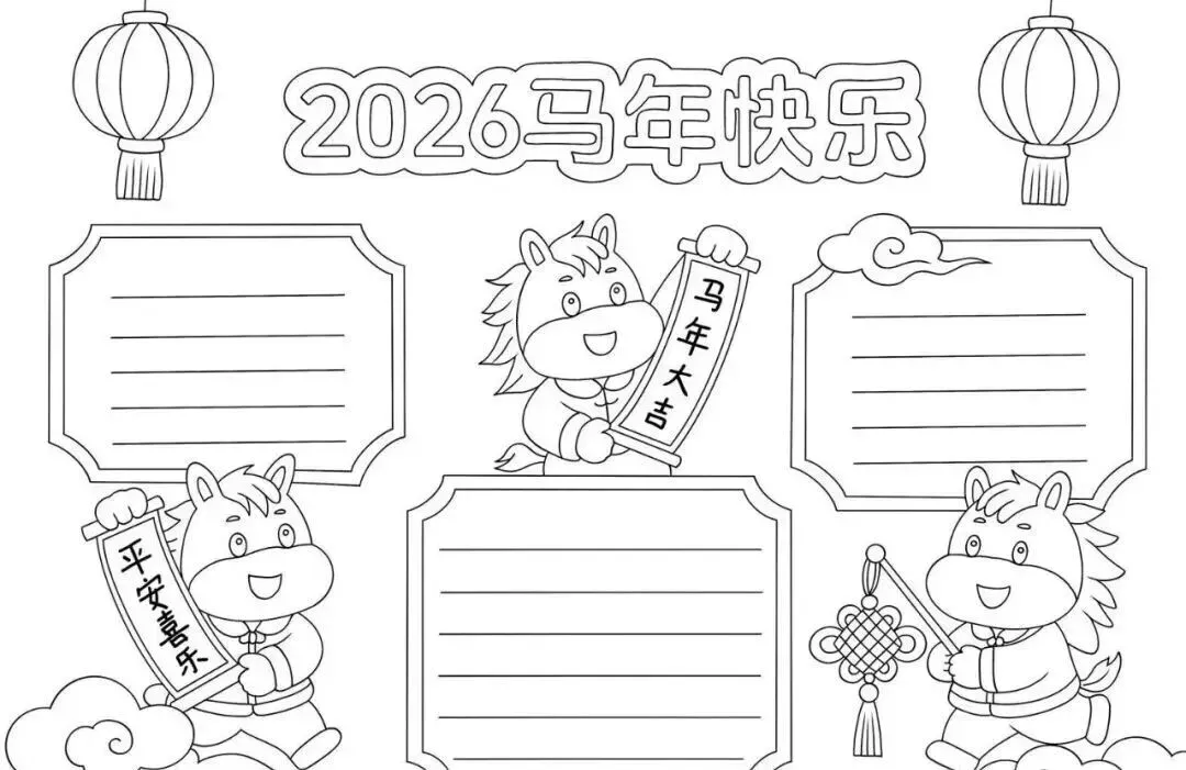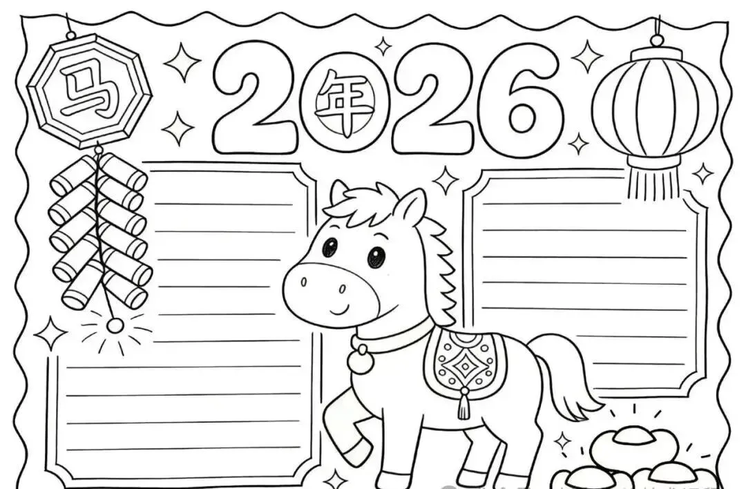 2026新年马年主题手抄报,彩图+线稿可打印|免费分享