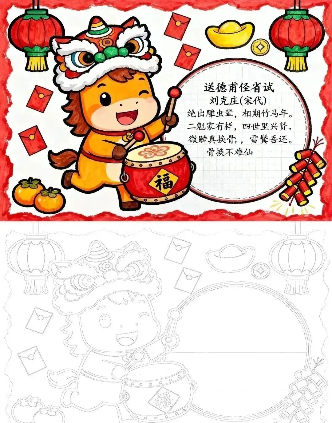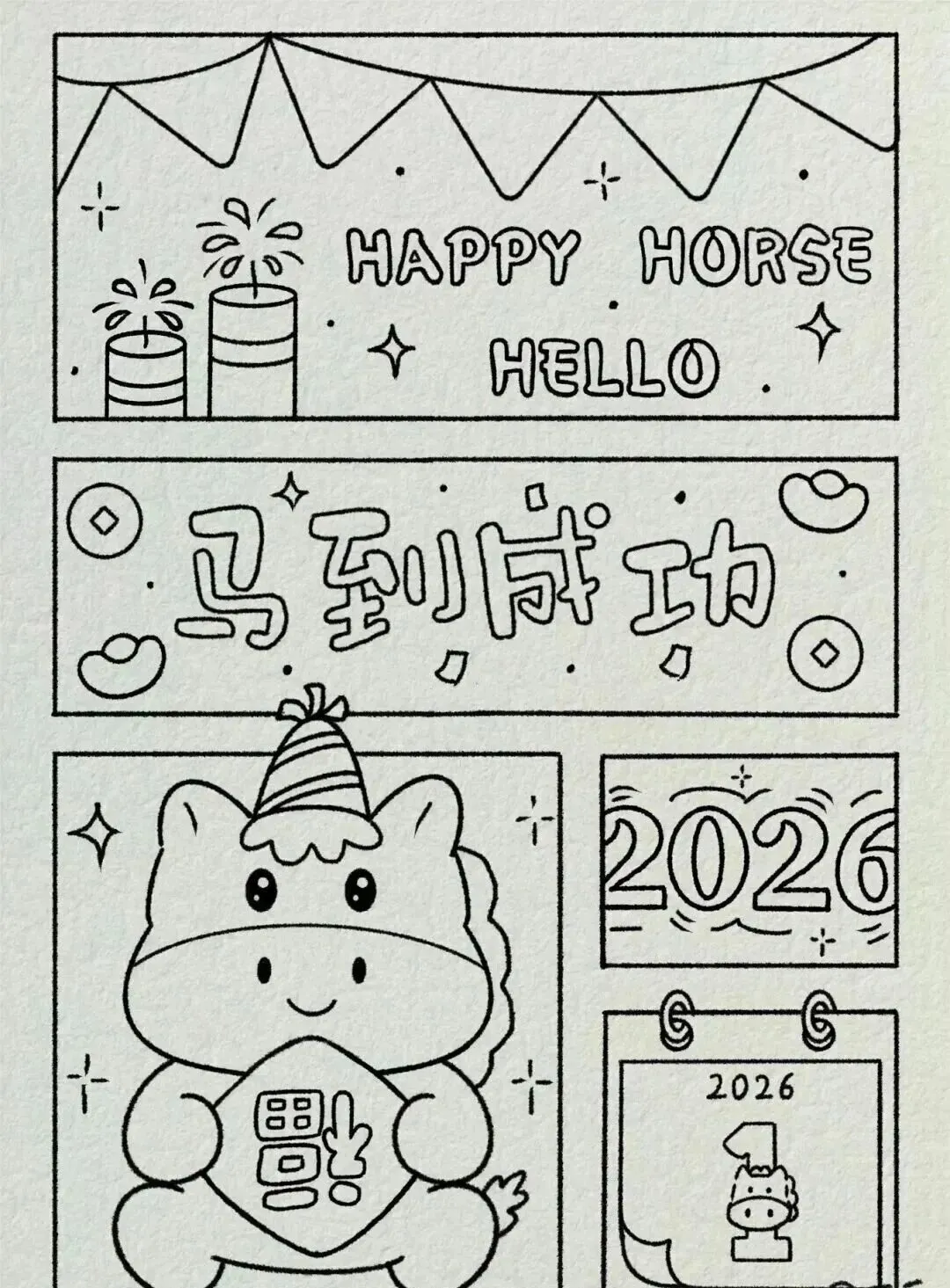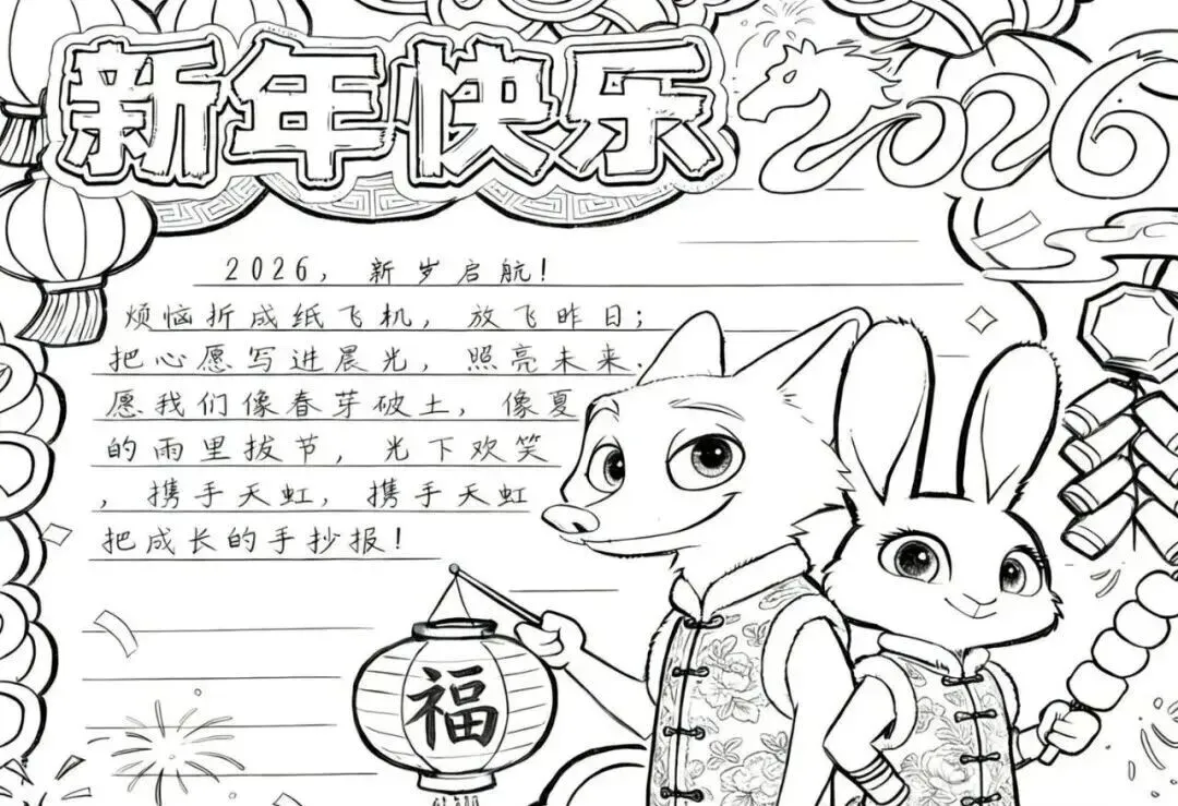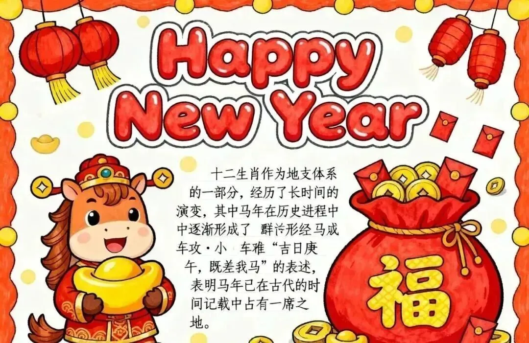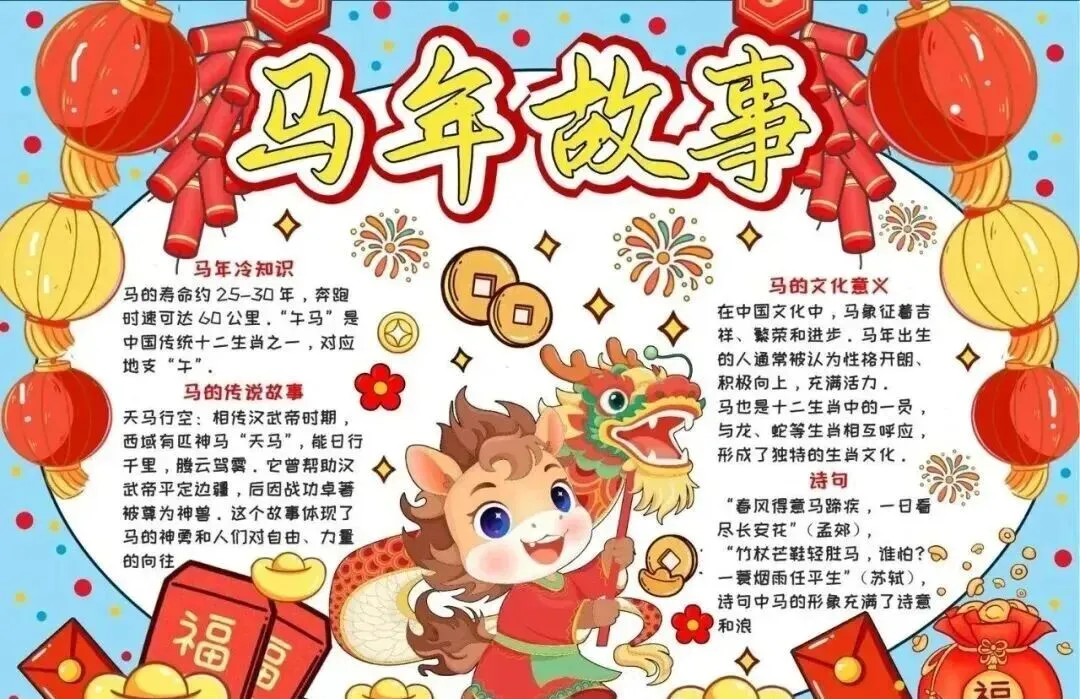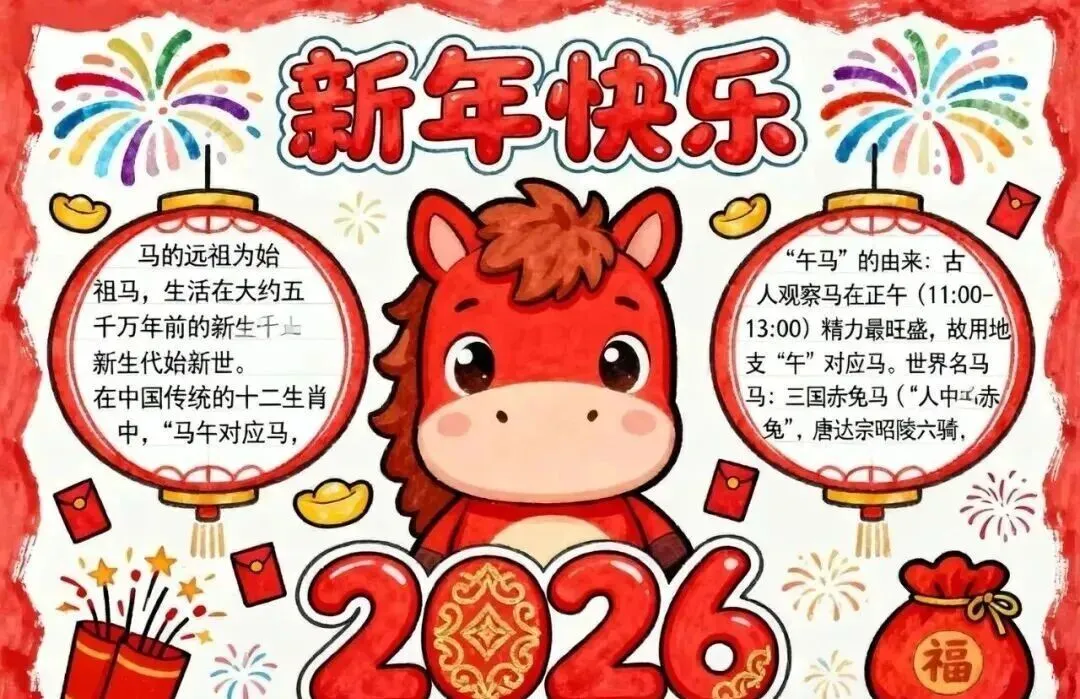 2026新年马年主题手抄报,彩图+线稿可打印|免费分享