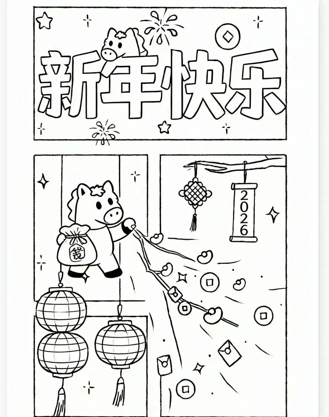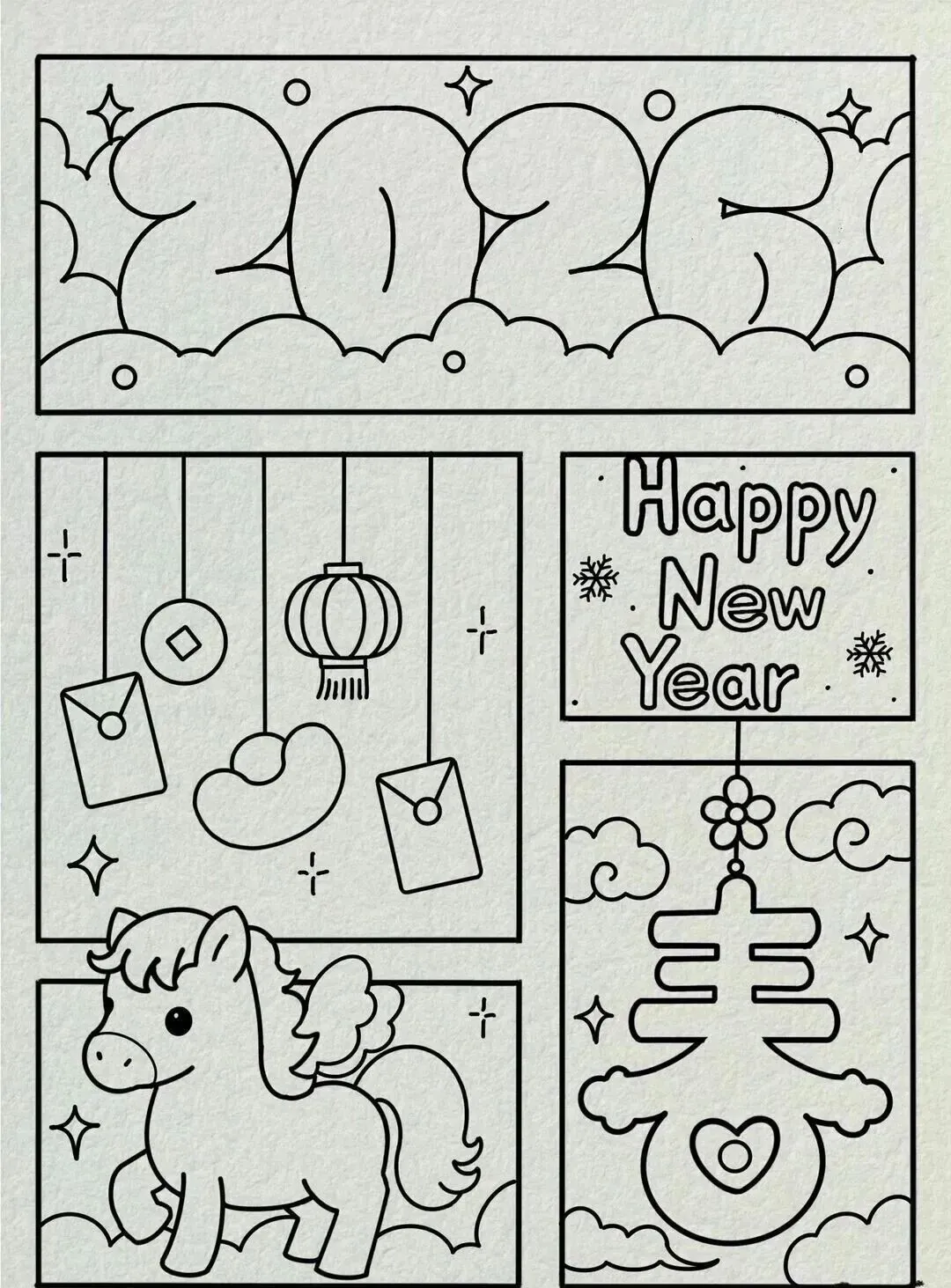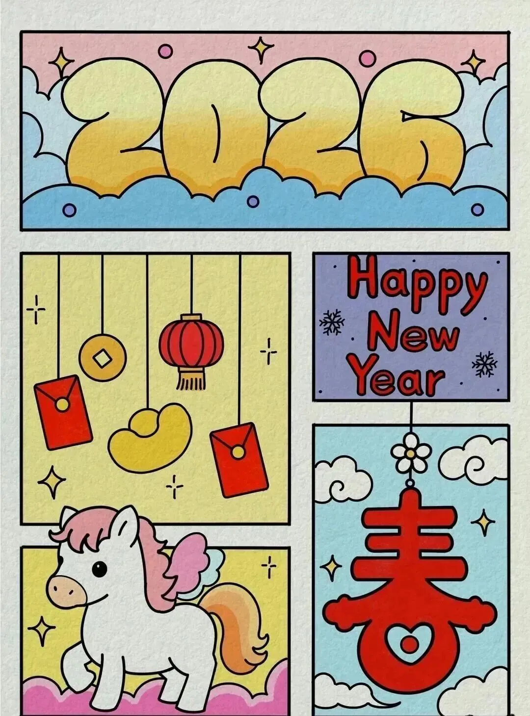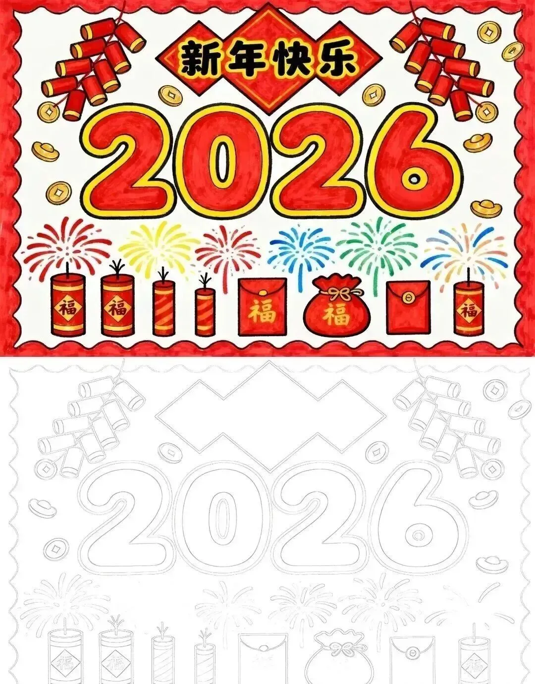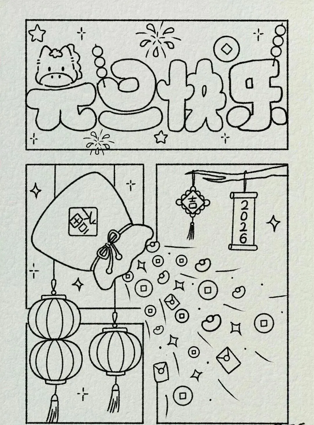 2026新年马年主题手抄报,彩图+线稿可打印|免费分享