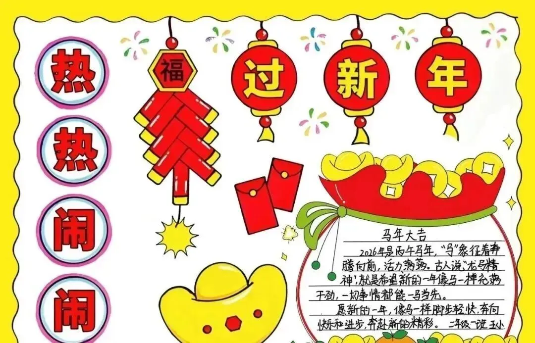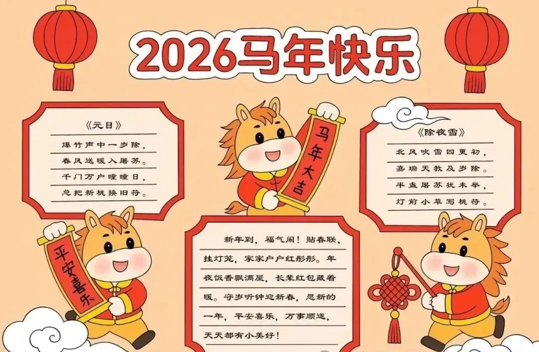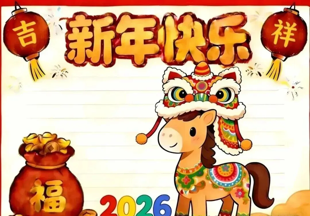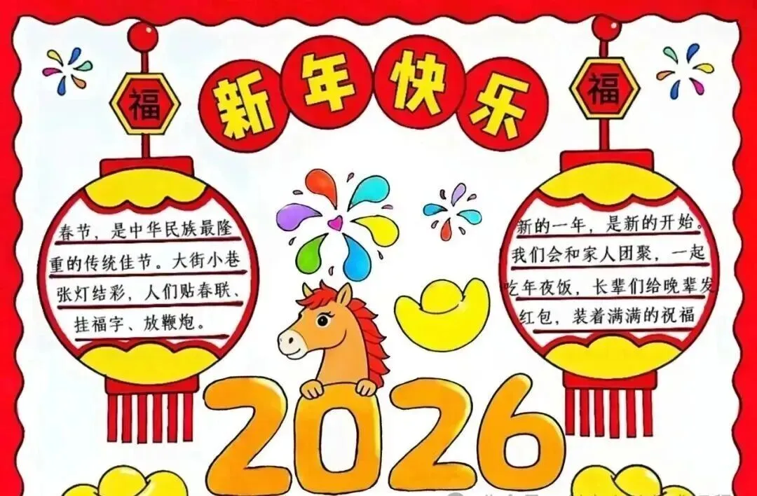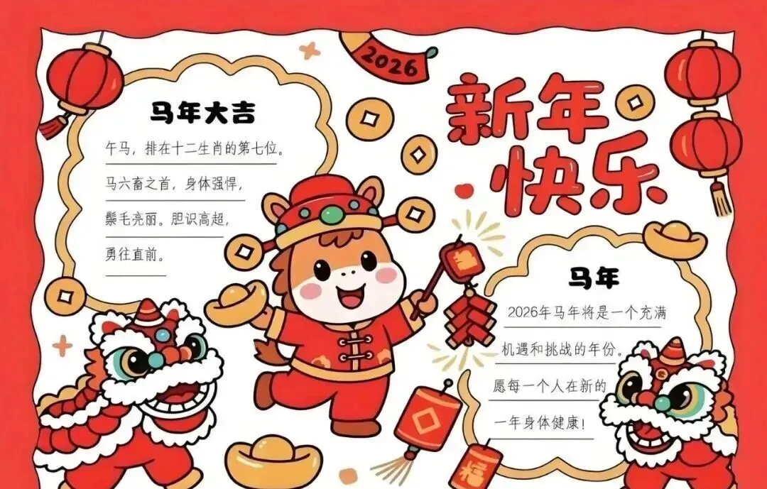 家长和同学们速存✅ 2026马年新年主题手抄报合集来啦!涵盖彩图成品与空白线稿,全是A4可打印版,免费分享无套路!适配小学各年级,主题包含龙马精神、马到成功等,年味十足。高清无水印,下载后直接涂色或填写内容,轻松搞定寒假手抄报作业。不用再熬夜手绘,一键获取全套模板,帮孩子高效完成任务,开学交作业不慌👇