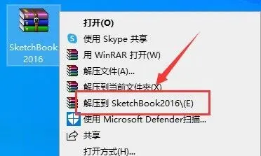 1.选中下载的【SketchBook2016】压缩包,鼠标右击选择【解压到SketchBook2016】。