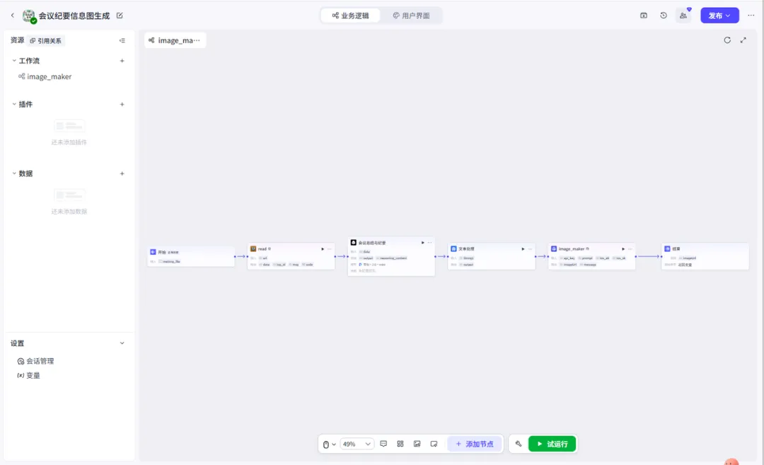 工作流跑通后,后端逻辑就搭建完毕了。
