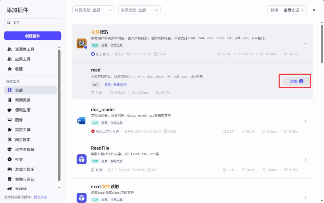 其中,文件读取节点是官方提供的,直接搜索对应插件即可使用。