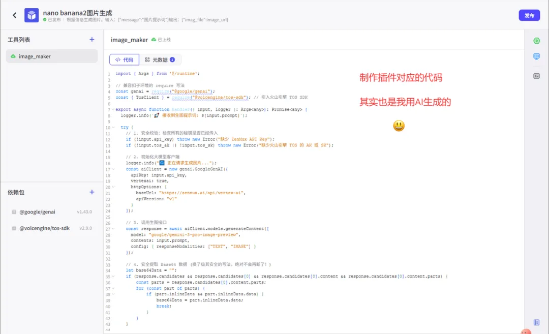 4. 将拼接后的指令传递给 Nano Banana Pro 生图插件,生成信息图。