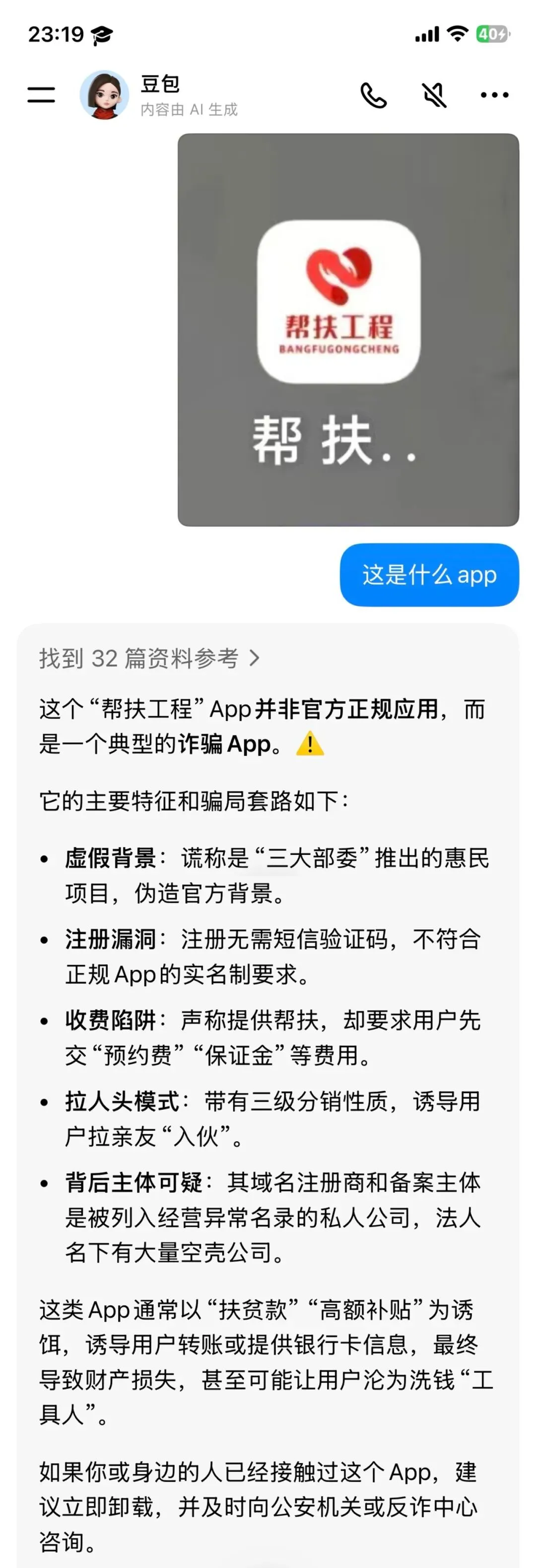 我心里咯噔一下:这名字一听就不太对劲,如果不是官方应用,多半有问题。还好之前教过妈妈怎么截屏,赶紧让她把APP截图发过来看看,发过来的截图长这样: