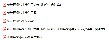 今天分享的资料是「1048-统计预测与决策」电子版+学习笔记+知识点总结+期末考试重点+复习资料+习题集及答案+名词解释+历年真题试卷及答案+题库及答案+复习重点+思考题及参考答案+公式总结+考试重点基础题+知识总结+高清PDF可打印+免费分享!