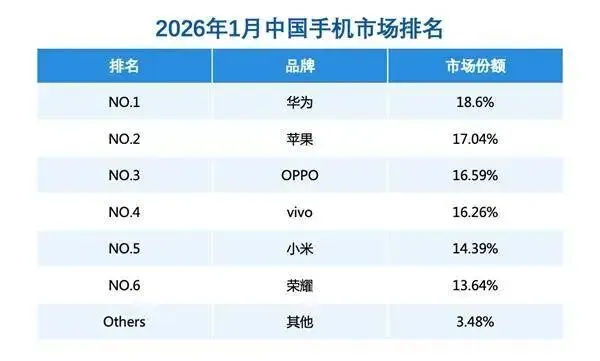 体育app#Mate 80卖爆!华为拿到1月中国手机市场份额第一名:份额提升至18.6%