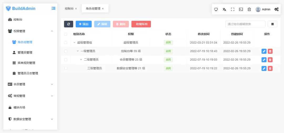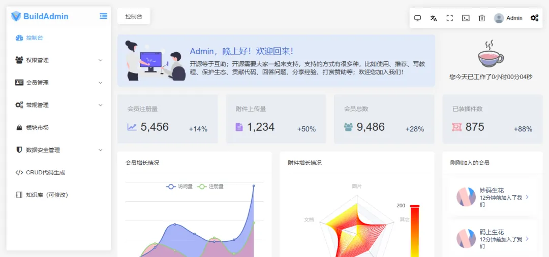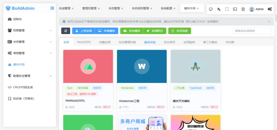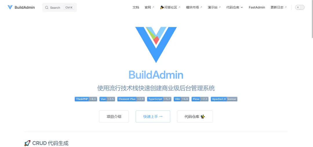web 端使用经典目录结构设计,并合理优化├─public(公共文件)├─src│ │ App.vue│ │ main.ts│ ││ ├─api(所有接口相关)│ │ │ common.ts(公共 Url 定义和公共请求方法)│ │ ││ │ ├─backend(后台接口方法定义)│ │ ││ │ └─frontend(前台接口方法定义)│ ││ ├─assets(静态资源)│ ││ ├─components(组件)│ │ ├─baInput(输入组件封装:常用+图片/文件上传、数组、城市/图标选择、富文本等封装在了一个组件内)│ │ ││ │ ├─contextmenu(tabs 右击菜单)│ │ ││ │ ├─formItem(表单项,结合 baInput)│ │ ││ │ ├─icon(字体图标组件,支持加载本地 svg、阿里、element、awesome)│ │ ││ │ ├─table(表格封装)│ │ ││ │ ├─mixins(可供模块混入代码到系统的埋点,如云存储,编辑器)│ │ ││ │ ├─clickCaptcha 点选文字验证码│ │ ││ │ └─terminal(终端)│ ││ ├─lang(所有语言包)│ │ │ autoload.ts(语言包按需加载映射表,比如路由 /user/user 需要同时加载 /user/group 的语言包可在此定义)│ │ │ globs-en.ts(全局英文语言包)│ │ │ globs-zh-cn.ts(全局中文语言包)│ │ ├─common(公共页面语言包:`t('dirName.pageName.翻译名')`进行调用)│ │ ├─backend(后台页面语言包:`t('dirName.pageName.翻译名')`进行调用)│ │ │ zh-cn.ts(后台公共中文语言包)│ │ │ en.ts(后台公共英文语言包)│ │ ├─frontend(前台页面语言包:`t('dirName.pageName.翻译名')`进行调用)│ │ │ zh-cn.ts(前台公共中文语言包)│ │ └─ en.ts(前台公共英文语言包)│ ││ ├─layouts(布局)│ │ ├─backend(后台布局)│ │ │ components (布局组件)│ │ │ container (布局容器组件,内含默认的四种布局方案)│ │ │ index.vue (后台布局入口)│ │ ├─frontend(前台布局)│ │ │ components (布局组件)│ │ │ container (布局容器组件,内含默认的布局方案)│ │ │ user.vue (会员中心布局入口)│ │ └─common(公共布局组件)│ ││ ├─router(路由)│ │ static.ts(静态路由配置)│ ││ ├─stores(状态商店)│ │ ├─adminInfo.ts(管理员资料)│ │ ├─config.ts(布局相关)│ │ ├─memberCenter.ts(会员中心)│ │ ├─navTabs.ts(后台顶栏 tab)│ │ ├─siteConfig.ts(站点配置)│ │ ├─terminal.ts(终端)│ │ ├─userInfo.ts(用户资料)│ │ ├─refs.ts(全局提供:引用(指向)一些对象(组件)的句柄)│ │ ││ │ ├─constant(常量定义)│ │ │ cacheKey.ts(缓存 Key)│ │ ││ │ └─interface(接口定义)│ │ index.ts│ ││ ├─styles(样式表)│ │ app.scss│ │ index.scss(css 入口文件,main.ts 只导入它就可以了)│ │ element.scss(element 的 css 覆盖)│ │ loading.scss│ │ var.scss(css 变量定义)│ │ dark.scss(暗黑模式下 css 变量定义)│ │ mixins.scss(scss mixins 与 function 定义)│ ││ ├─utils(工具库)│ │ axios.ts(网络请求封装)│ │ baTable.ts(表格封装)│ │ build.ts(构建时)│ │ common.ts(公共方法)│ │ directives.ts(指令)│ │ horizontalScroll.ts(横向滚动工具)│ │ iconfont.ts(图标)│ │ layout.ts(布局辅助)│ │ loading.ts(页面加载)│ │ pageBubble.ts(页面气泡效果)│ │ pageShade.ts(全局阴影)│ │ random.ts(随机数、字符串生成)│ │ router.ts(路由辅助)│ │ storage.ts(local 缓存、session 缓存封装)│ │ useCurrentInstance.ts(快速获取当前实例)| | useDark.ts (暗黑模式相关工具函数)│ │ validate.ts(一些表单验证方法)│ │ vite.ts(vite运行与编译时)│ ││ └─views(视图)│ ├─backend(后台视图)│ ├─common(公共视图)│ └─frontend(前台视图)│├─types│ .editorconfig(IDE 风格统一配置)│ .env(基础环境变量定义)│ .env.development(开发环境变量定义)│ .env.production(生产环境变量定义)│ .prettierrc.js(prettier 配置)│ eslint.config.js(eslint 配置)│ index.html(入口文件)│ package.json│ README.md│ tsconfig.json(ts 配置)└─ vite.config.ts(vite 配置)