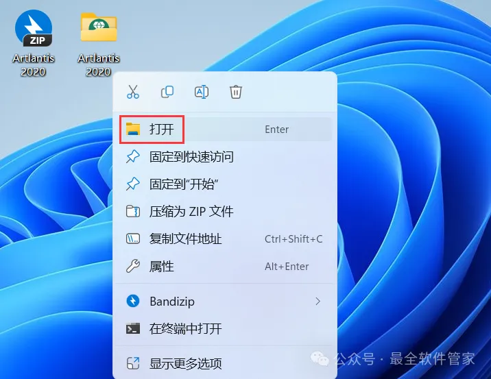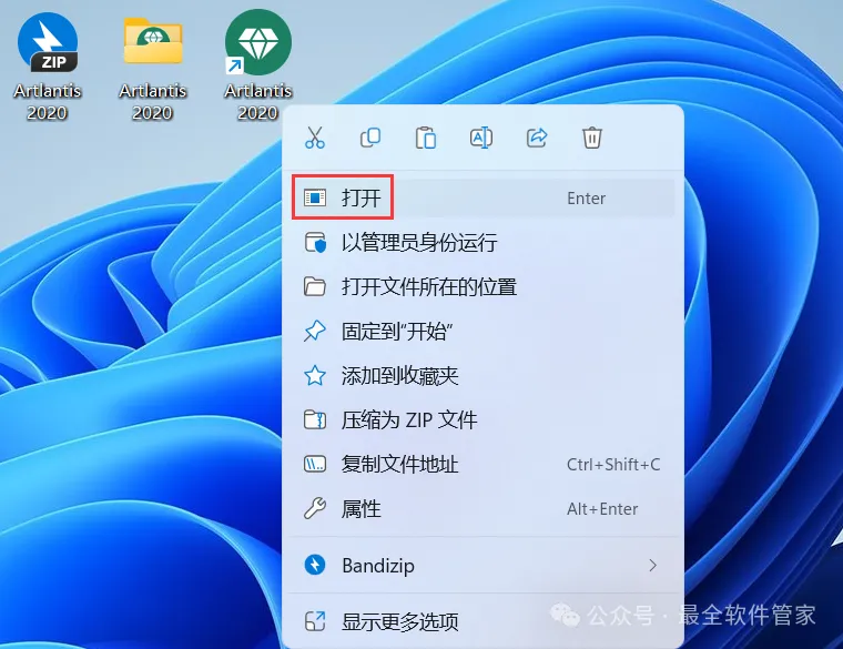 18、回到桌面,右键桌面上的【Artlantis 2020软件图标】,点击【打开】