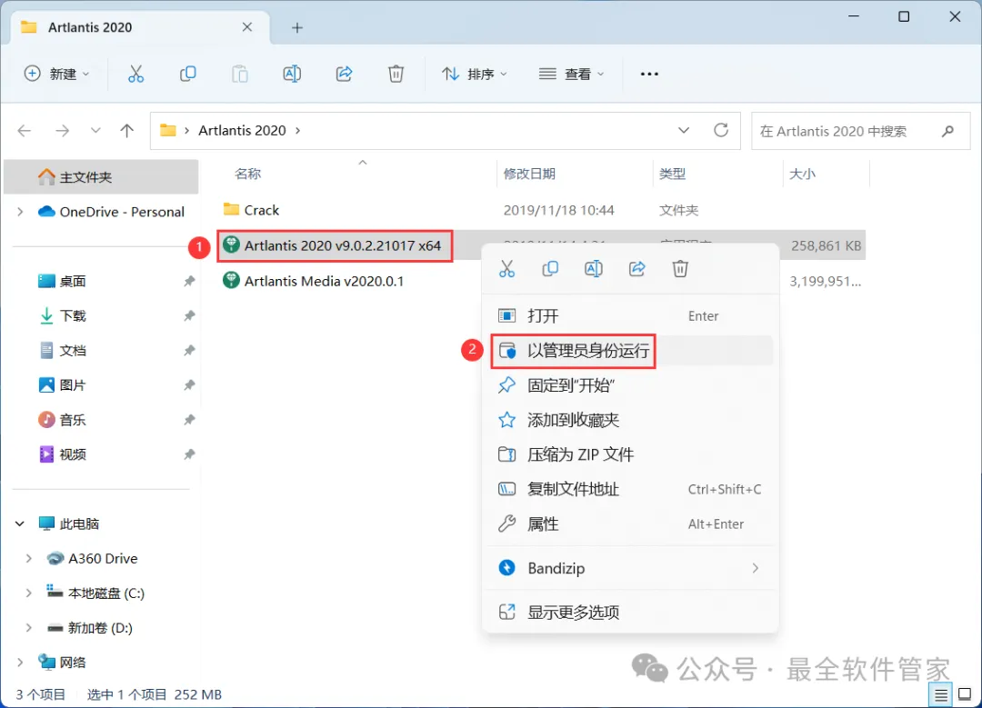 3、找到【Artlantis 2020】应用程序,右键选择【以管理员身份运行】它