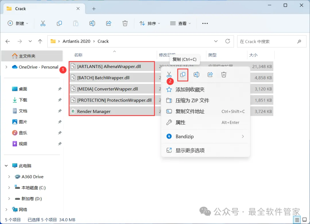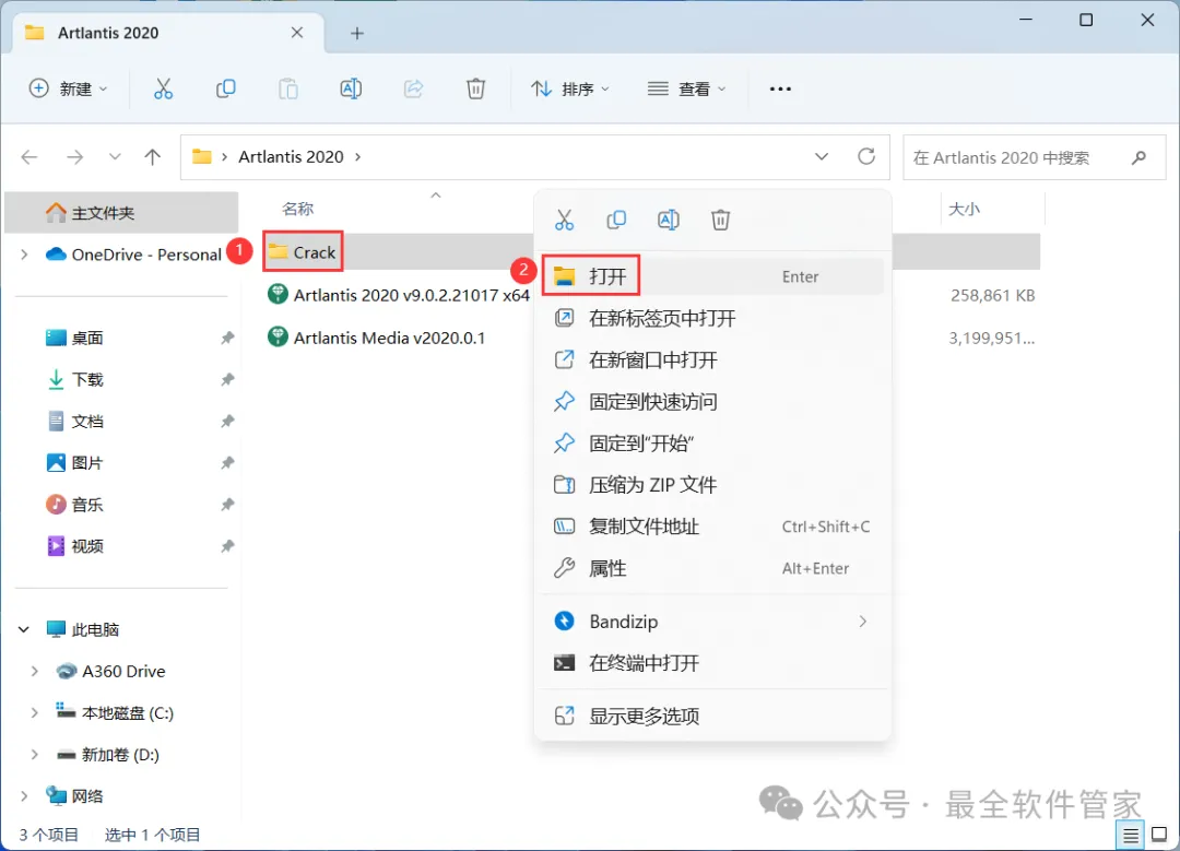 13、回到Artlantis 2020文件夹,找到【Crack】文件夹,右键【打开】它