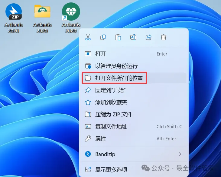 15、右键桌面上的【Artlantis 2020软件图标】,点击【打开文件所在的位置】