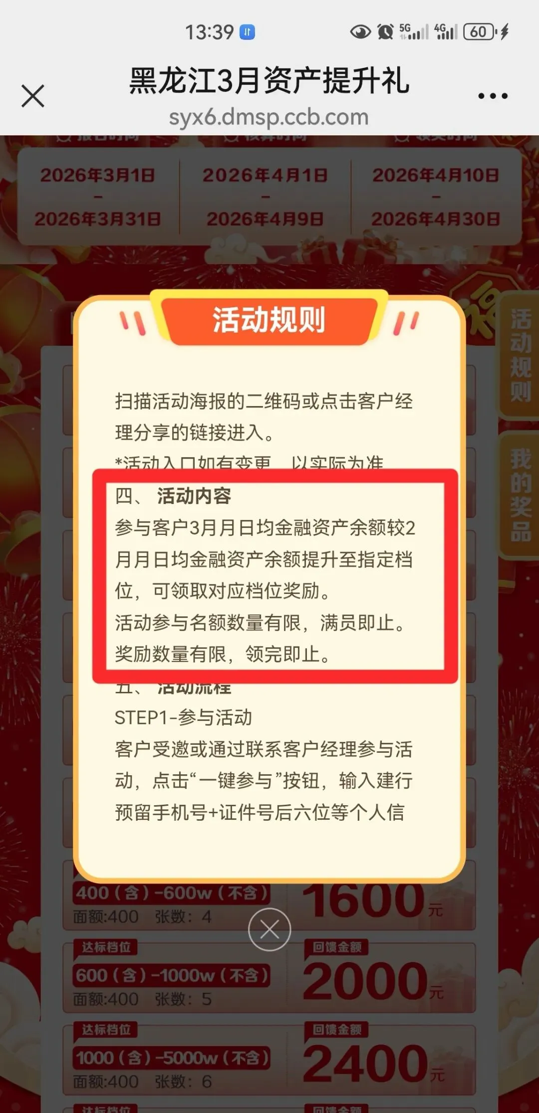 建设银行APP,约惠龙江,资产提升礼达标次月审核合格可领微信立减金