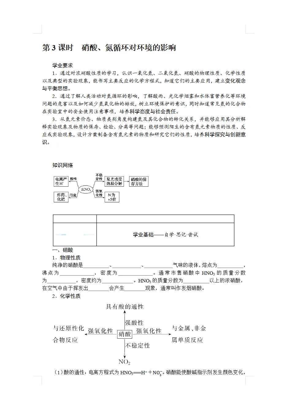 鲁教版高中化学必修一导学案 | 可下载打印