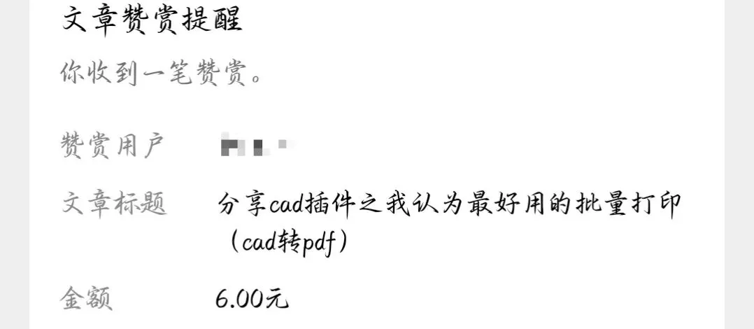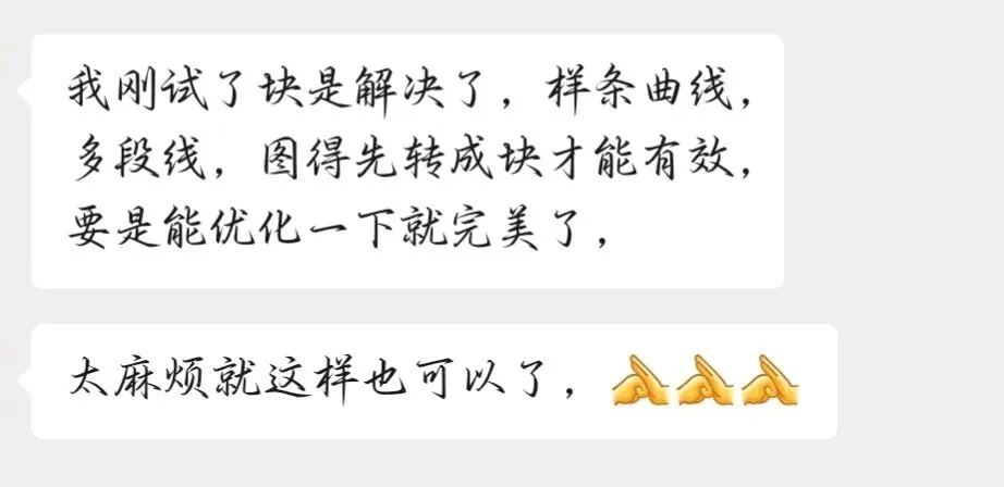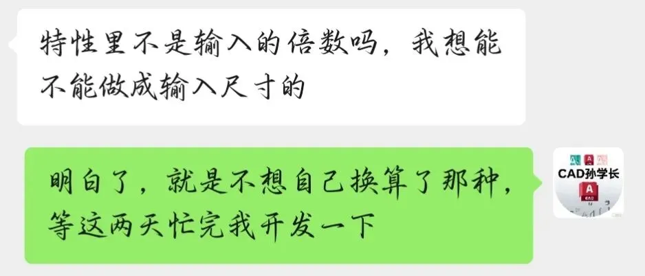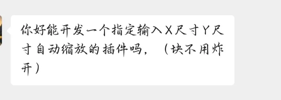 自写cad插件之批量不等比例缩放到目标尺寸(不是倍数) cad插件是高效使用CAD的灵魂 –CAD孙学长 该cad插件获取方式在文末 二话不说关注后直接赞赏两次的朋友提出需求: 然后孙学长就开始开发… 开发完孙学长必须追求完美, 不断的调试修改最后优化为本插件, 解决了样条曲线、多段线等不能不等比缩放的问题。 💡 适用场景: 可以调整GCD图层中的字体块高度到指定尺寸 可以不等比缩放块,不需要计算比例因子 可以不等比缩放圆、样条曲线等 可以不等比缩放多段线,但是缩放完会变成直线,需要运行cad自动命令join合并一下 更多待朋友们发现的场景 …… 命令SF(缩放)展示效果如下: 已关注 关注 重播 分享 赞 视频详情 获取方式一: 先关注。因为关注私信后孙学长才可以主动发起私信,发送插件。 评论区留言后,孙学长择机一对一分享【密享】链接,限制访问1人,有效期1天,需要及时保存。适合不着急使用的朋友。 获取方式二: 赞赏。文末红色的“喜欢作者”,可设置任意金额。 赞赏后自动下发插件的百度网盘链接,及时高效无限制。 获取方式三: 详见感谢大家支持,关注顺利突破100。 勿让插件在收藏夹吃灰,用到哪个分享哪个 朋友若是愿意,辛苦点击文末广告,让孙学长挣个广告费
