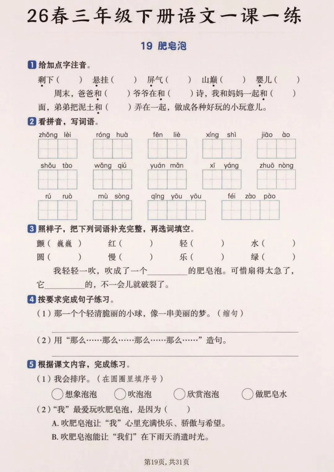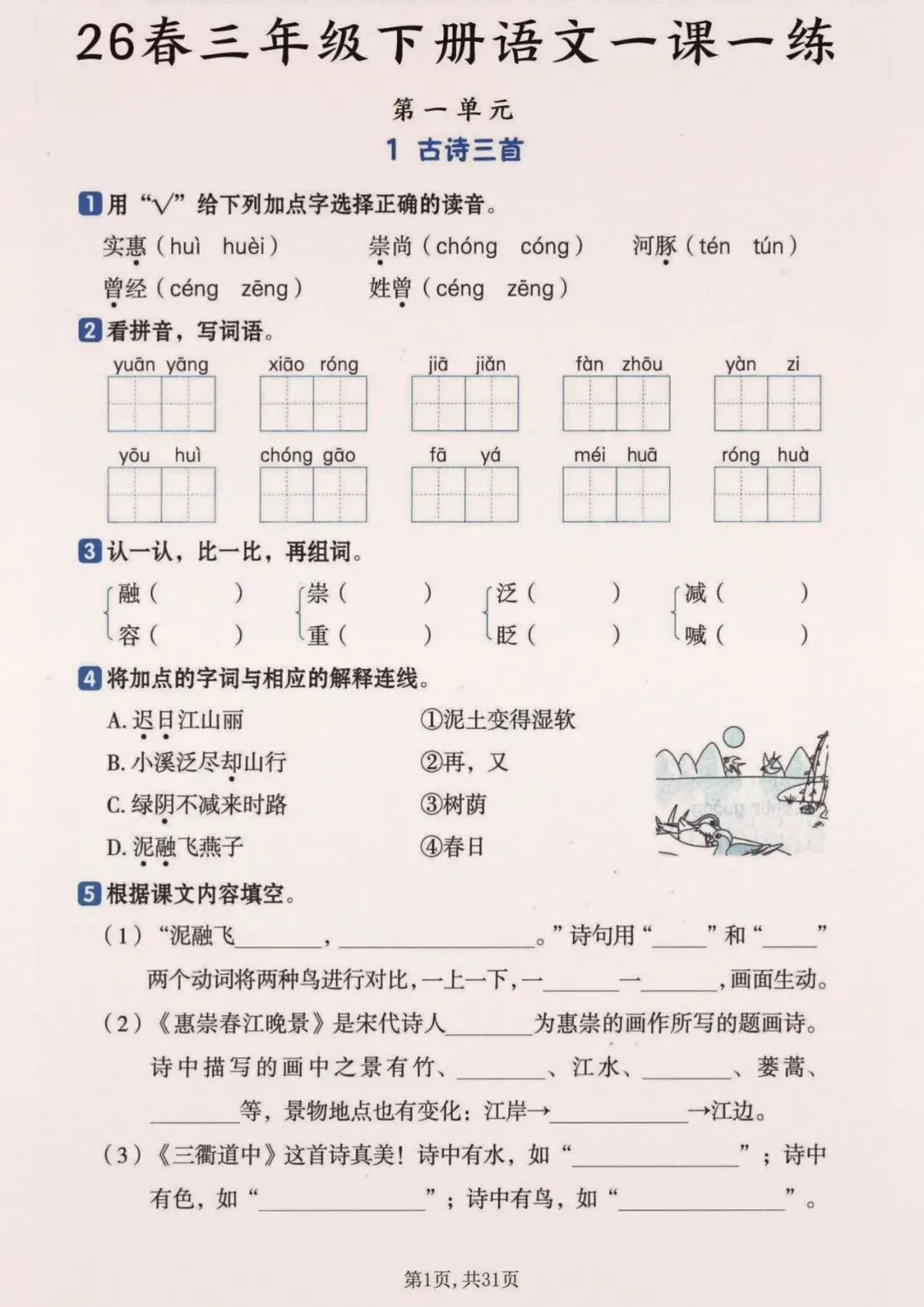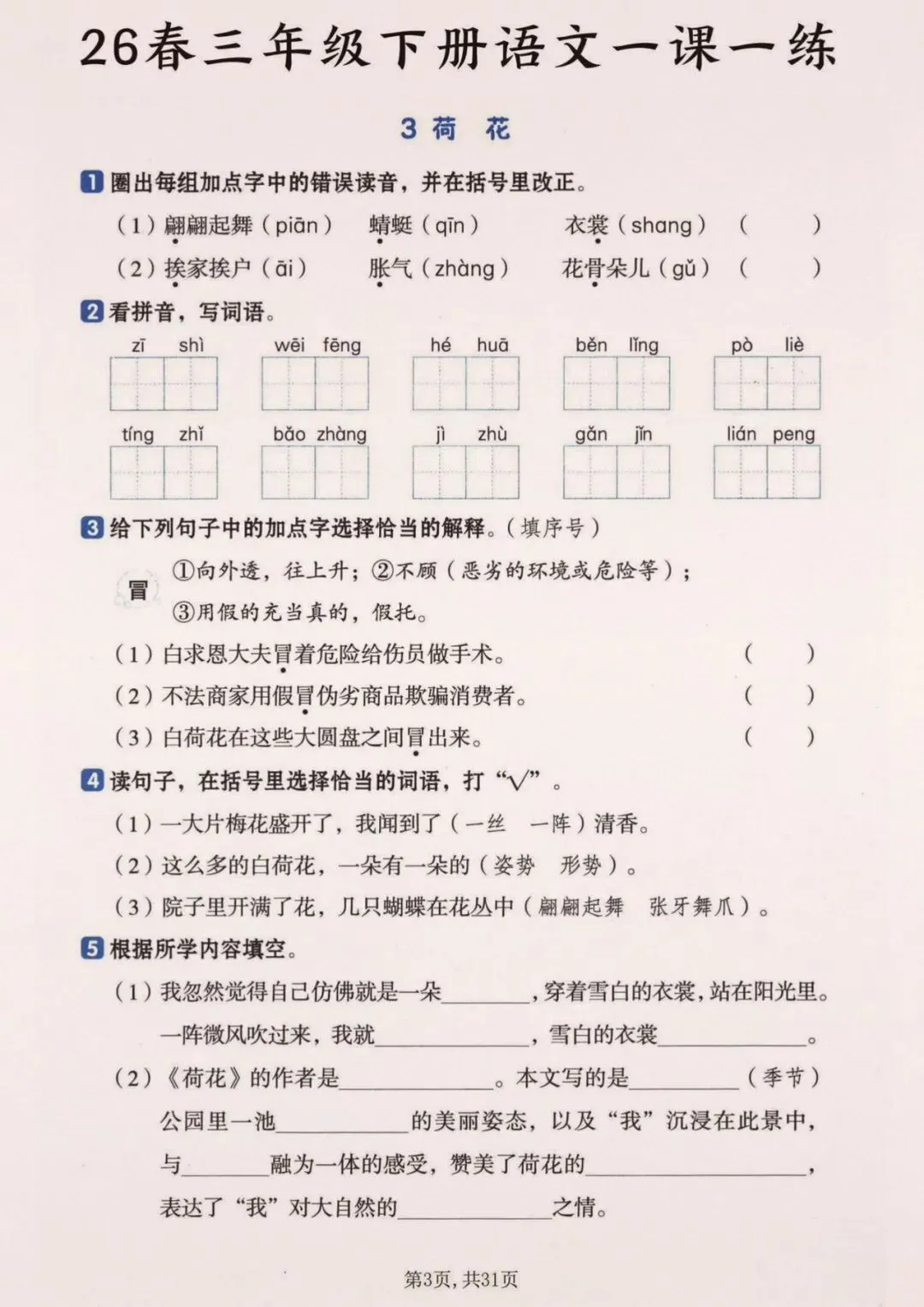 26春三年级下册语文一颗一练(完整电子版可打印)