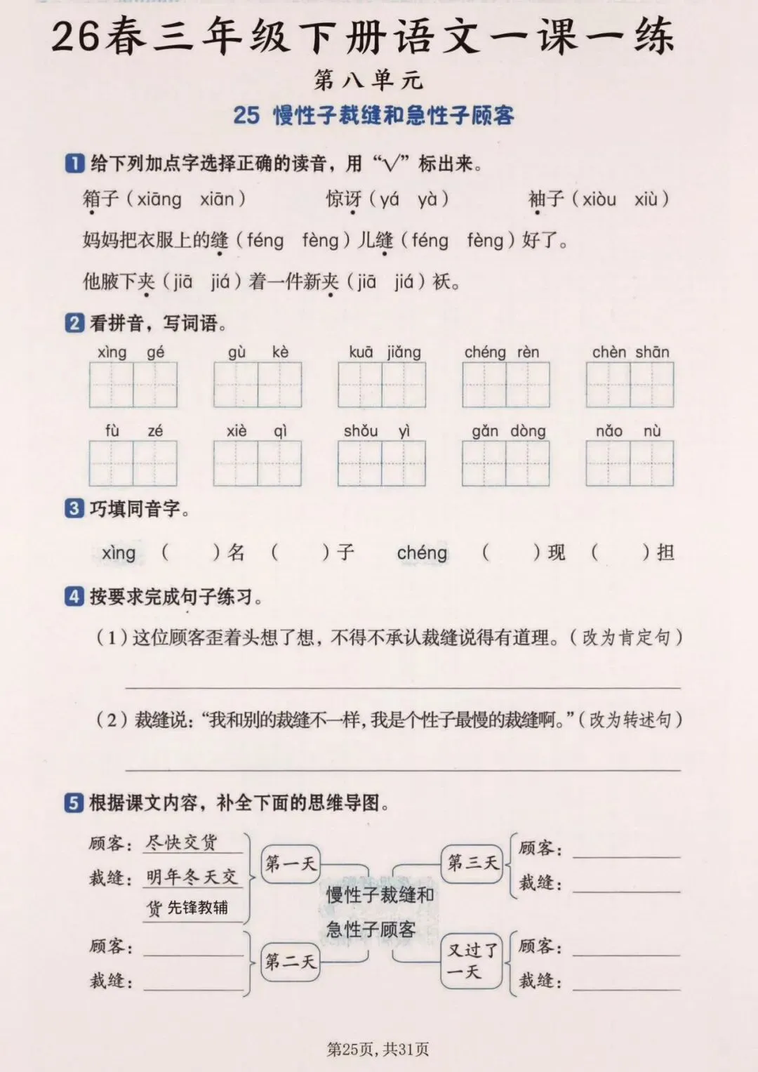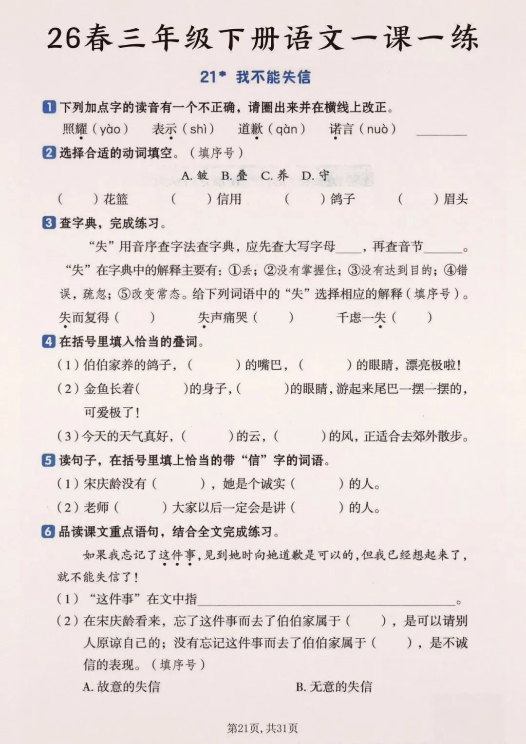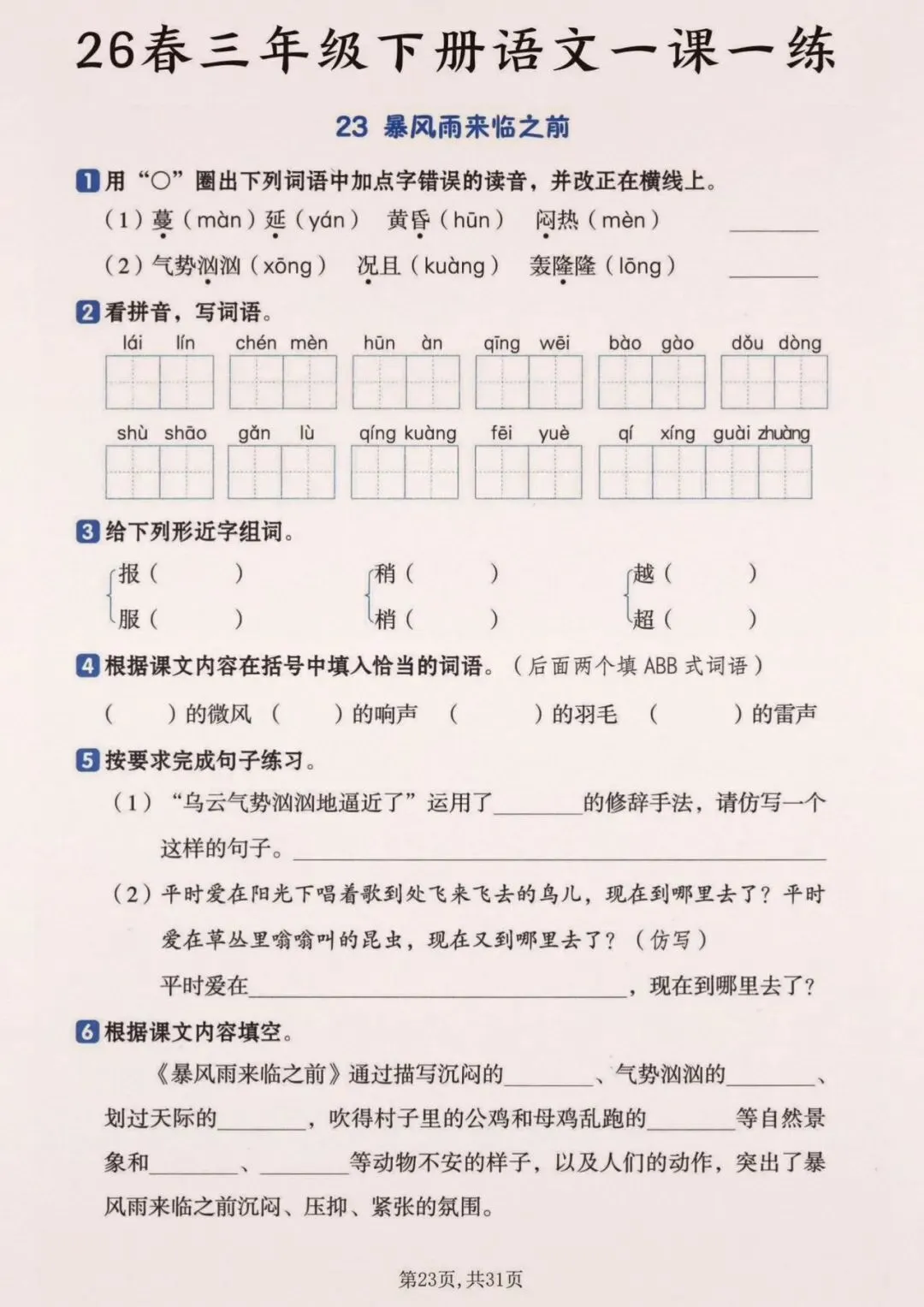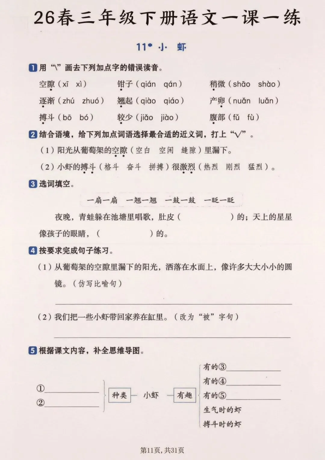 26春三年级下册语文一颗一练(完整电子版可打印)