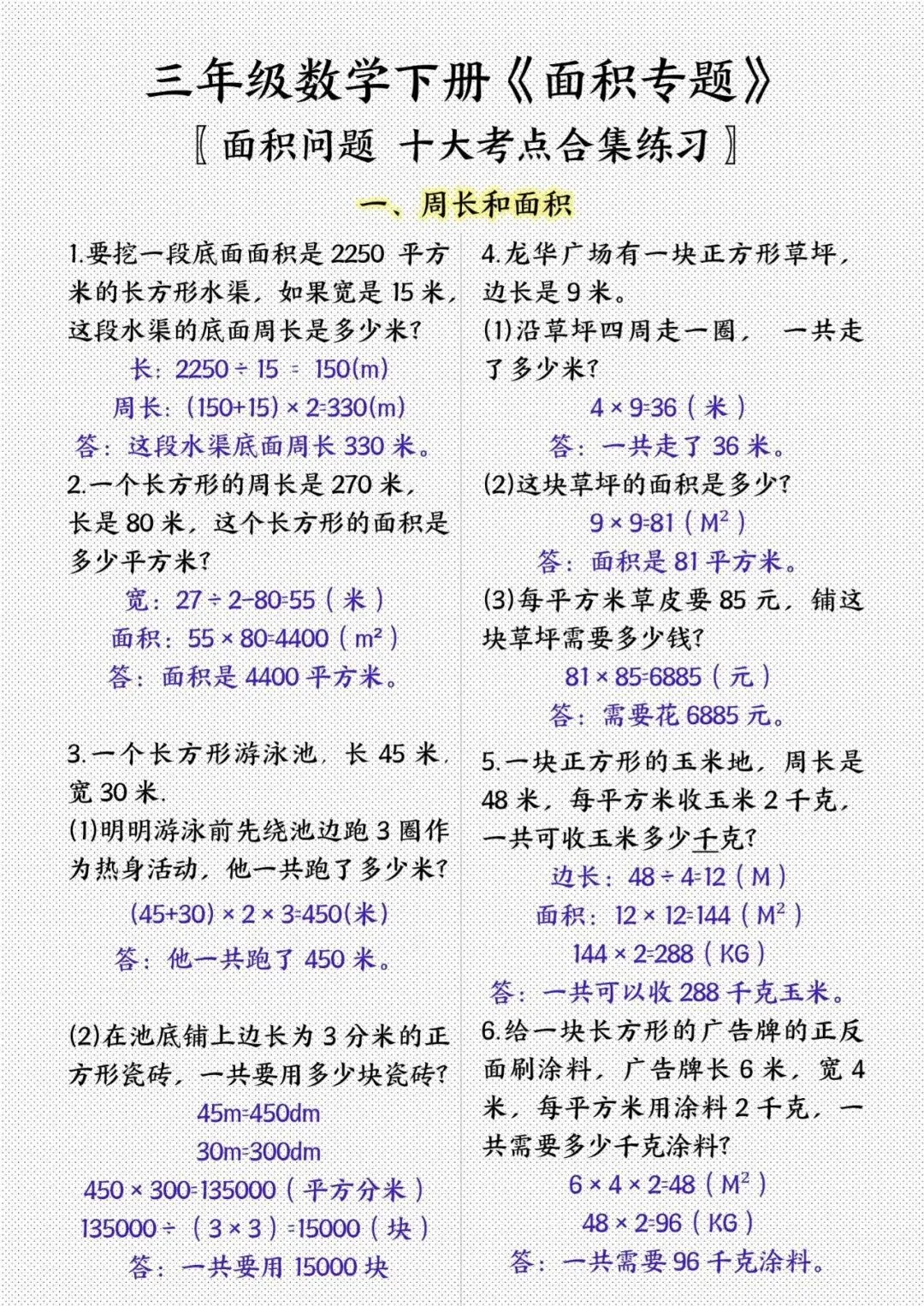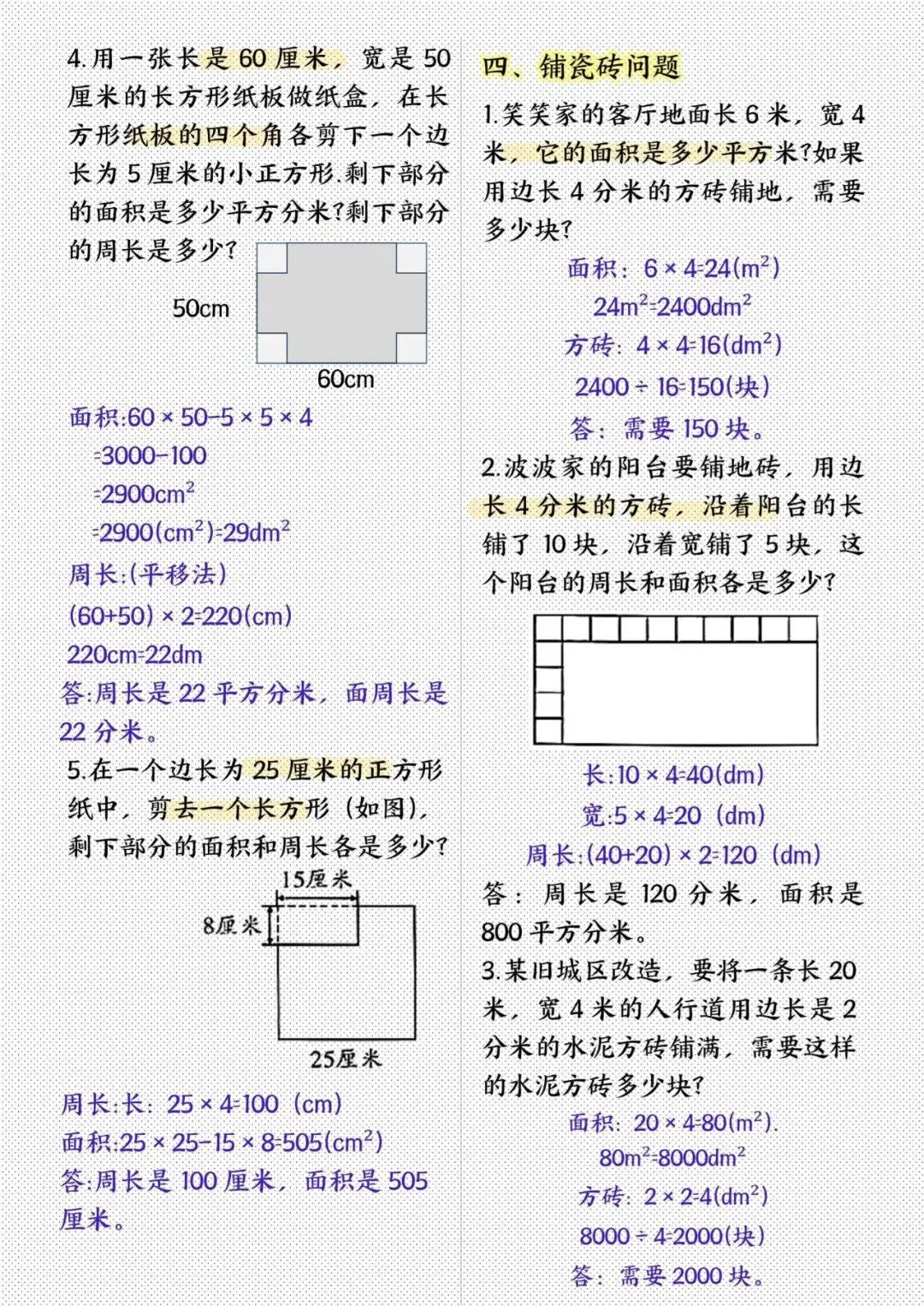 【高清电子版】三年级(下)数学 面积专项应用题十种类型专项题