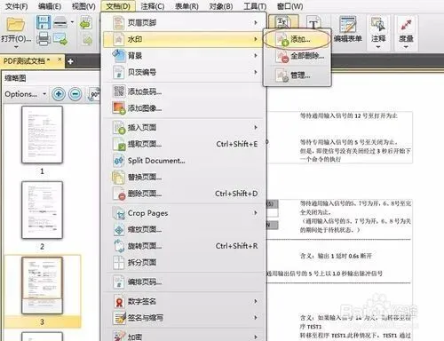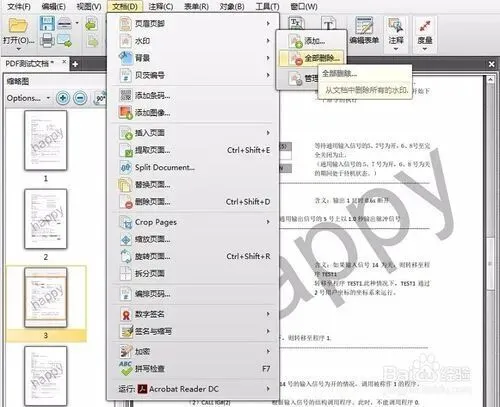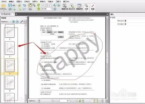 PDF编辑工具,网上这样的软件很多,自己可以下载一试着教程操作,我们来打开文档,在页面缩略图中可以看到每页上都有一些水印。