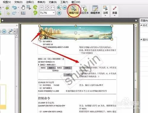 如果有不能删除的水印,可以选编辑内容工具,文档页面的所有内容都能进行编辑,然后再对该部分内容操作。