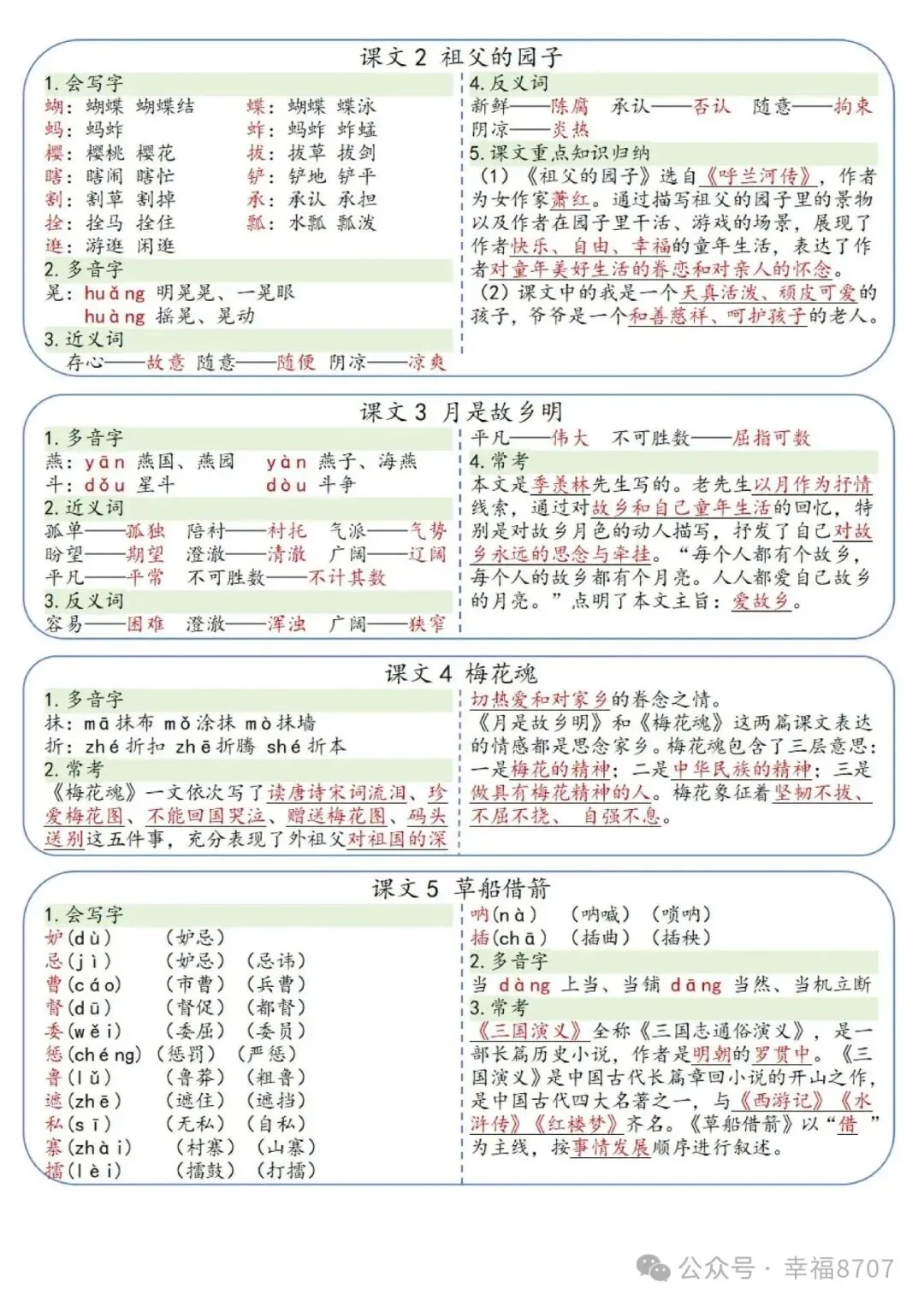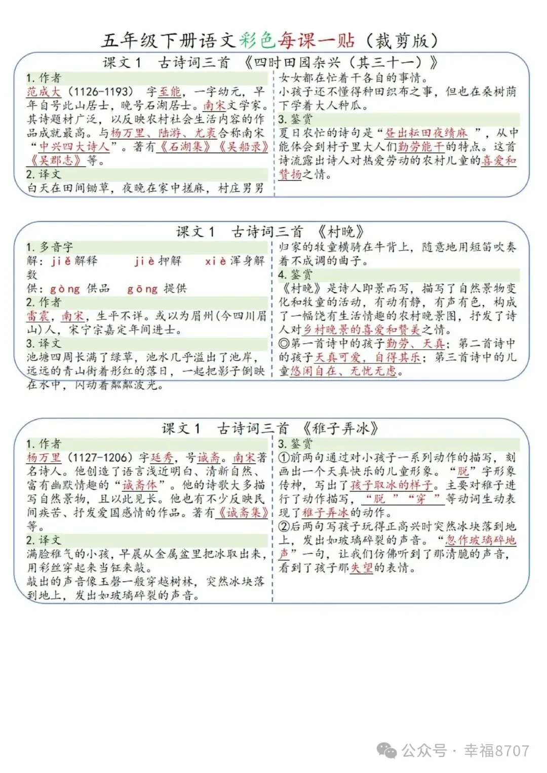 26春五年级下册语文《课课贴》|完整电子版可打印。