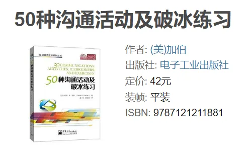 《50种沟通活动及破冰练习》pdf+epub+mobi+azw3电子书免费下载 《50种沟通活动及破冰练习》电子版下载链接,点击文章末尾左下方“阅读原文”自动跳转。 代找电子书加微:350775395,加微备注领取电子资料可免费领取20T电子资料合集(古籍/电子书/小说/游戏/软件工具/电影/电视剧/动漫/PPT素材/教辅资料/烹饪教程/各类学习文档等电子资源)。 特别提醒:电子资料仅供个人学习使用,链接随时失效,请及时保存到个人网盘!
