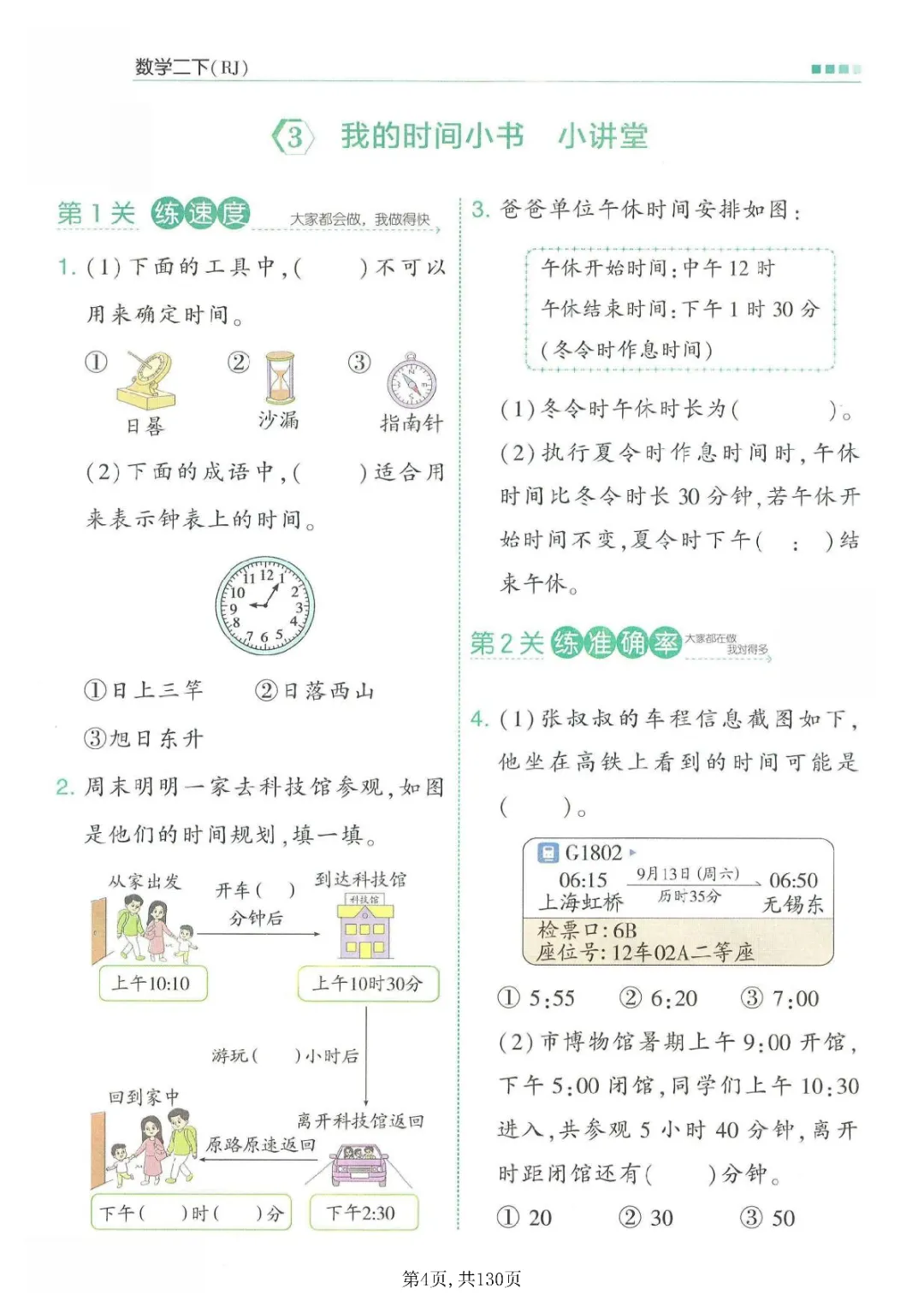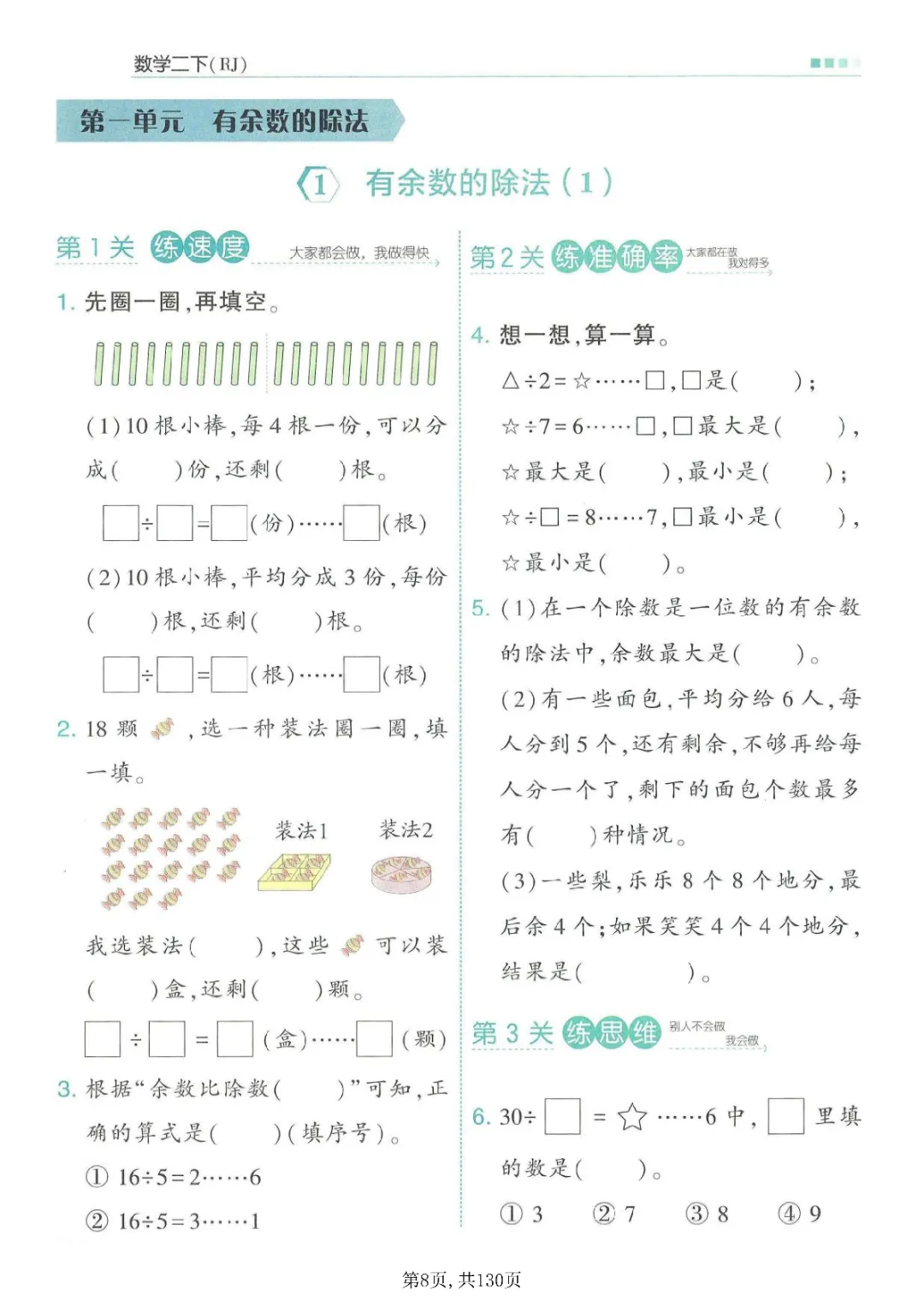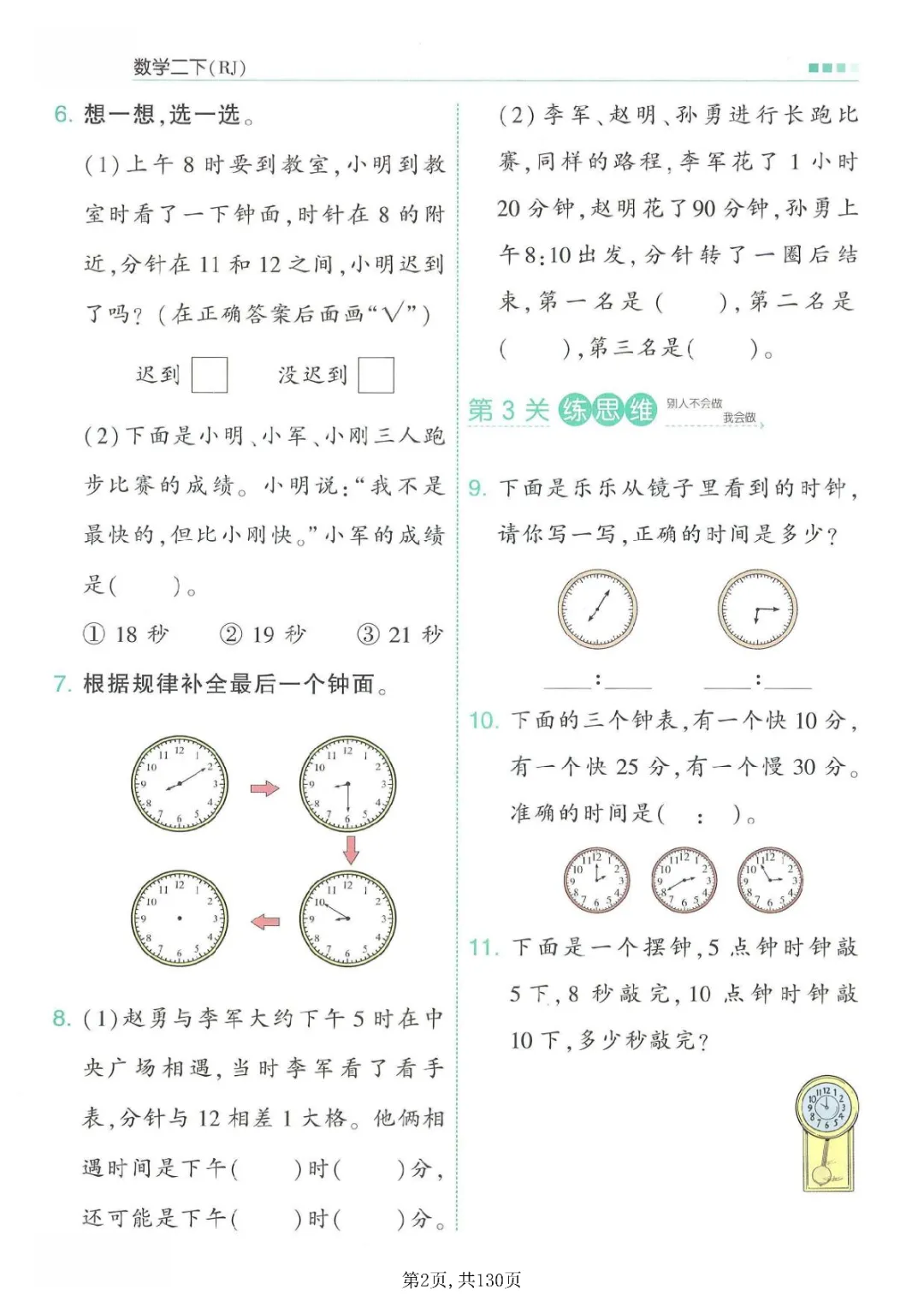 二年级下册数学同步一课一练(电子版可打印)