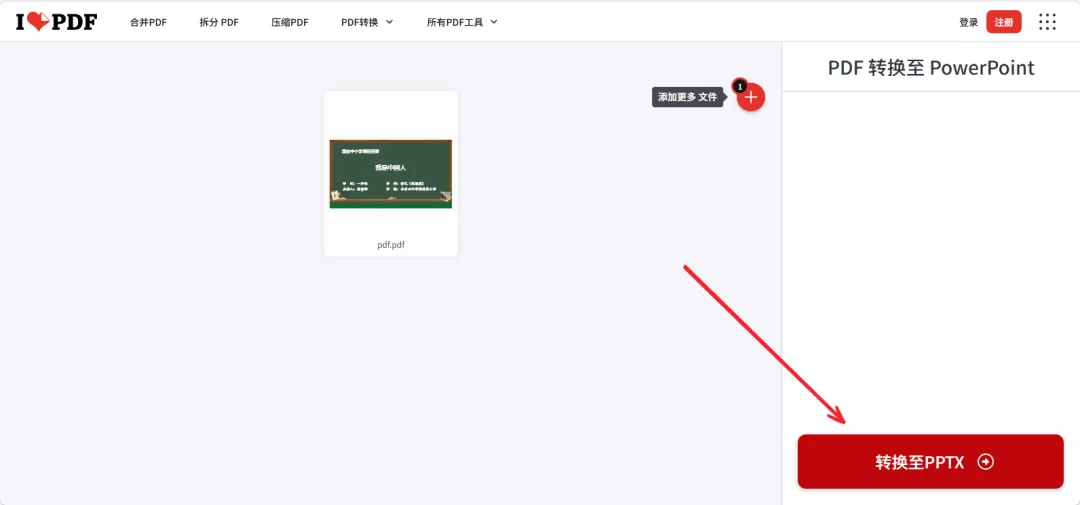 上传完成后点击【转换至PPTX】。