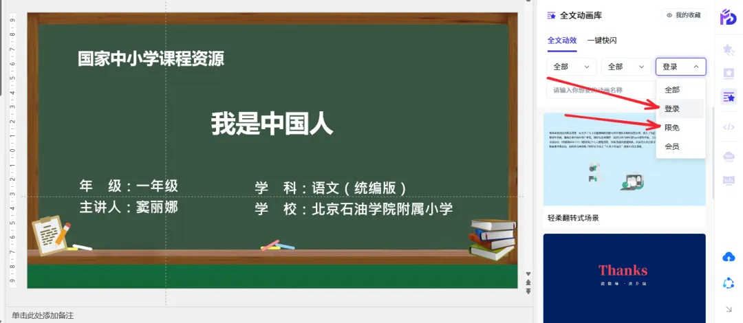 筛选免费可用的全文动画,可以选择“登录”或“限免”。