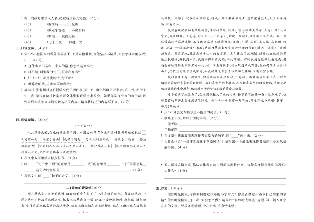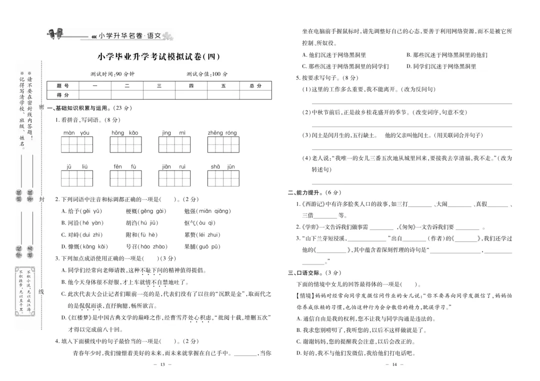 语文《小升初总复习冲刺100分》| 可打印 声明:公众号资料整理于网络,版权归原作者所有。资料仅供个人学习或购买纸质版参考用,禁止一切商业用途。若资料侵犯到您的权益,请联系我们立即删除 。 版权声明: 本公众号分享的资源,均为免费公益性分享,仅供学习和教学使用,请勿用于商业用途。所有文件版权归原作者所有,如有侵权可以联系本人删除。本公众号尊重版权,有任何版权问题,请添加微信,会快速回复。