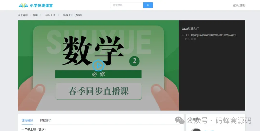 本课程演示的是一款基于SpringBoot+Vue前后端分离的在线教育学习平台,主要针对计算机相关专业的正在做毕设的学生与需要项目实战练习的 Java 学习者。